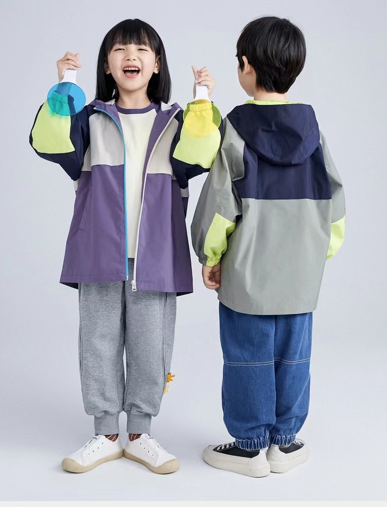 【à perles精选】马*丁撞色拼接儿童冲锋衣连帽外套