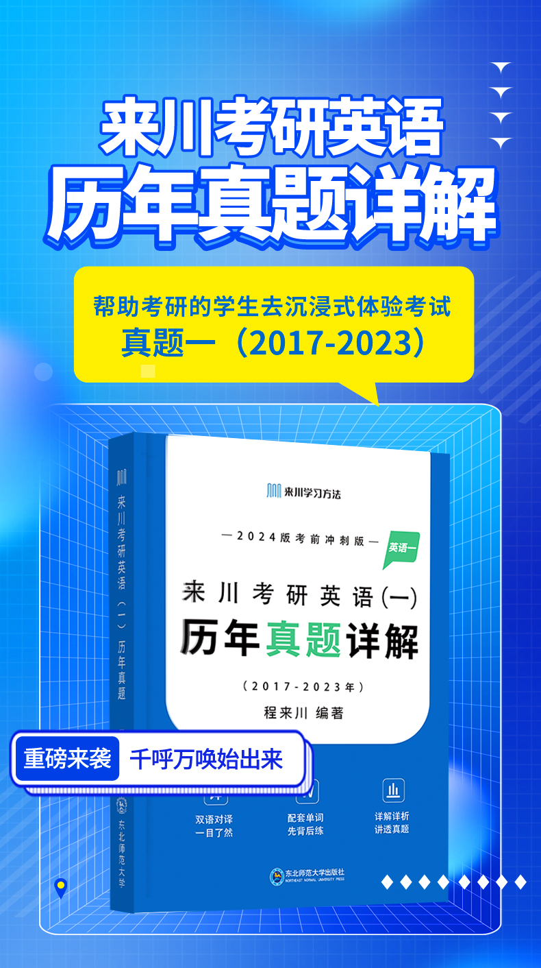 2024来川考研英语一真题详解 2017-2023共7年真题 含单词册含详解