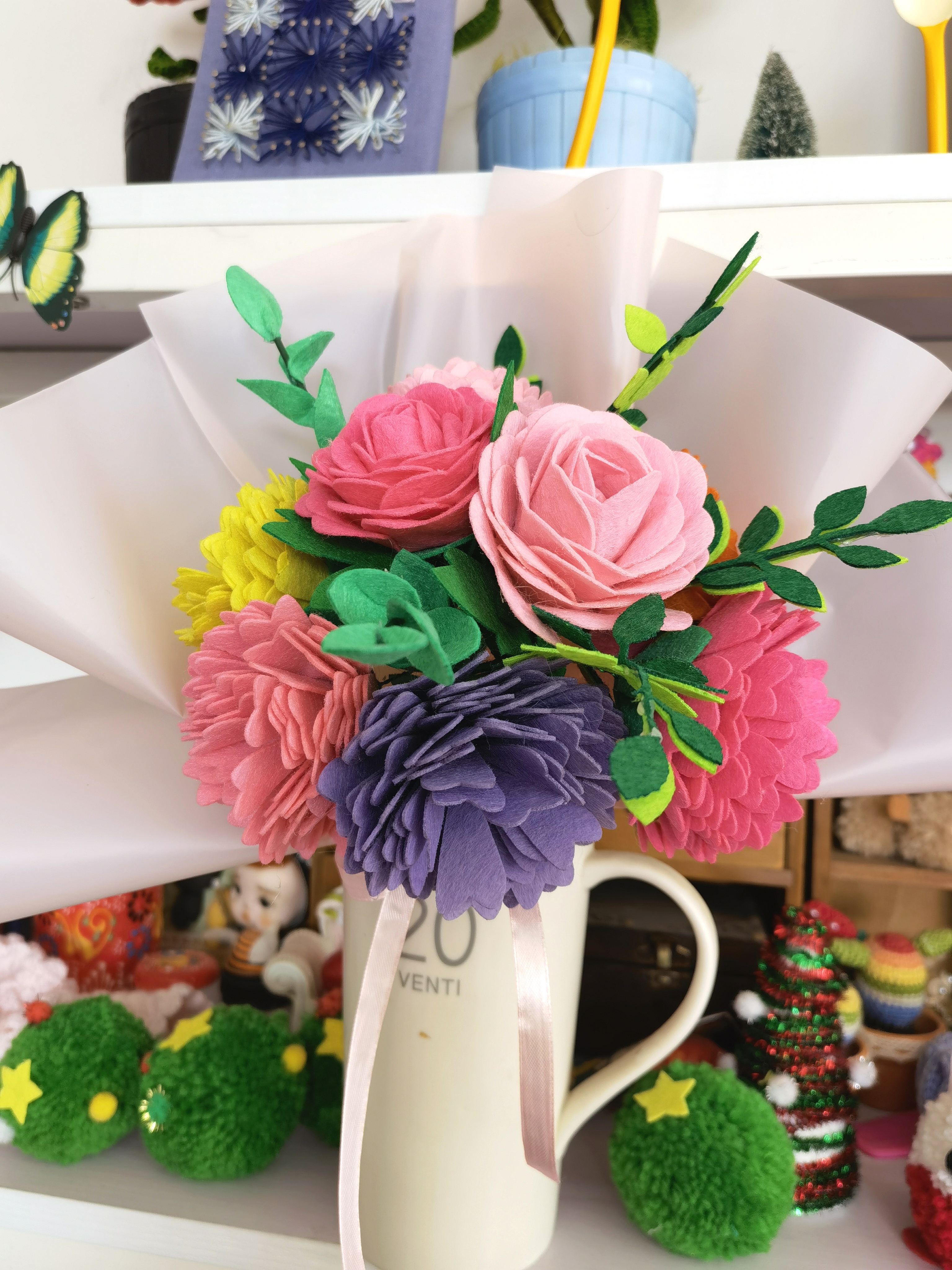 花不是成品,需要自己动手制作,里面会配有胶水