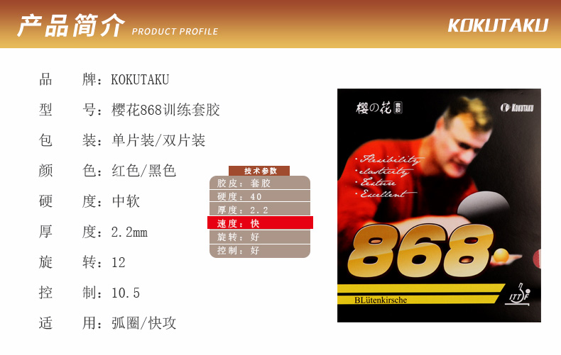 KOKUTAKU樱花868套胶训练套乒乓球胶皮球拍反胶套胶 专业训练胶皮