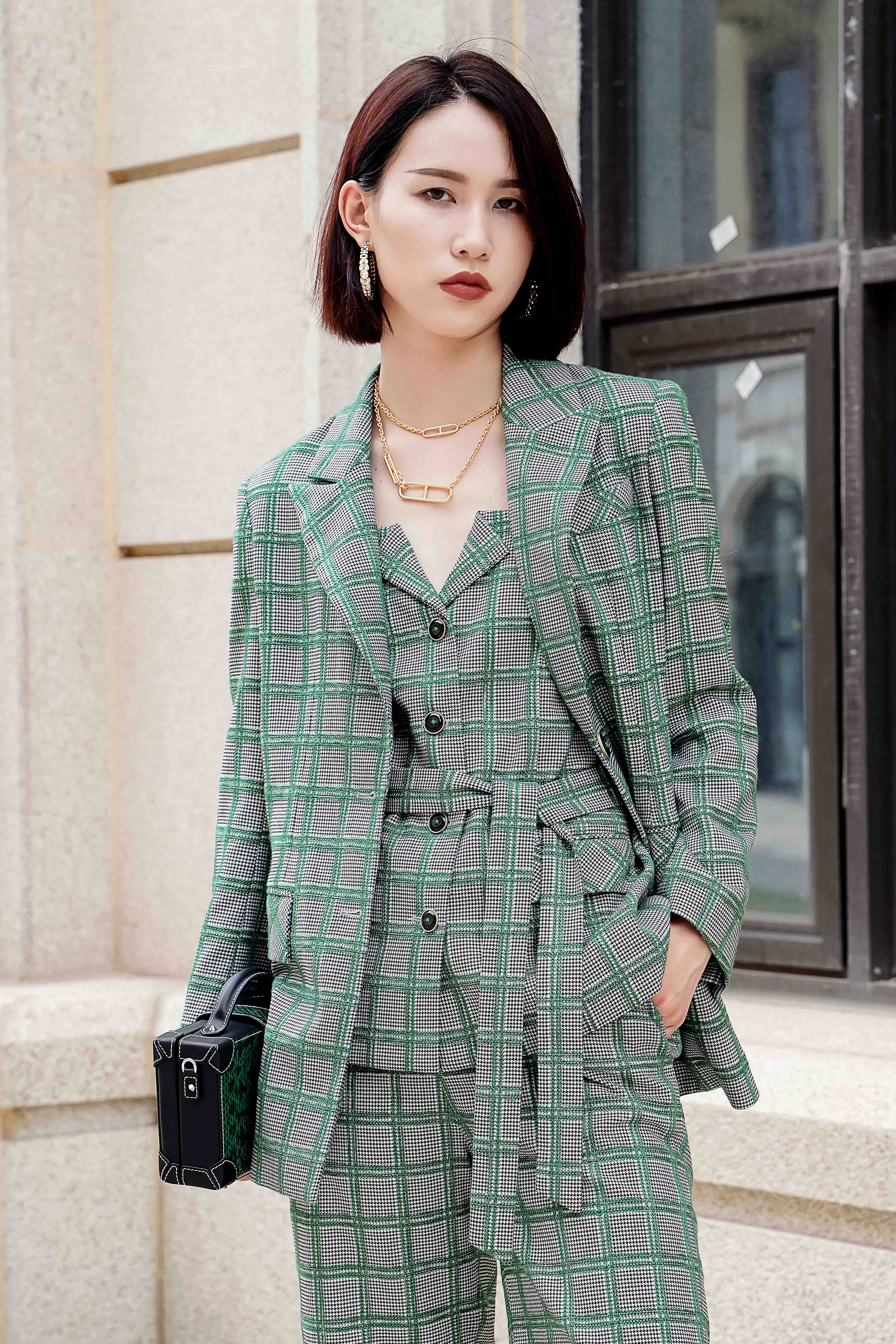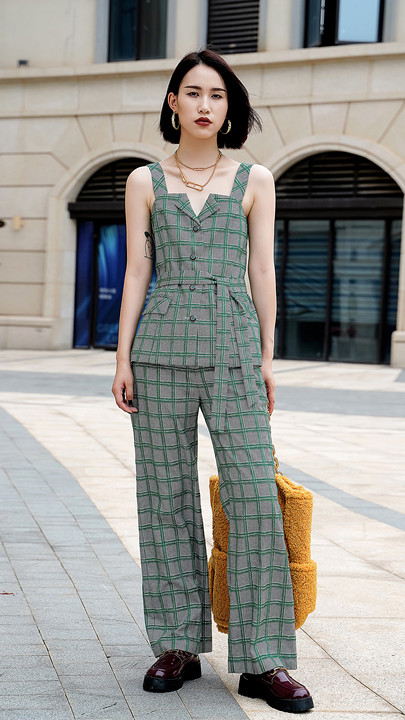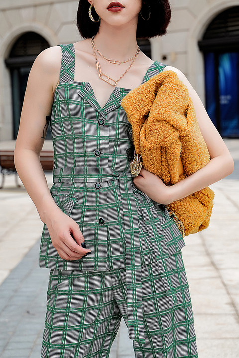 【内购不退换】臣禾绿色格纹吊带背心马甲9213053876
