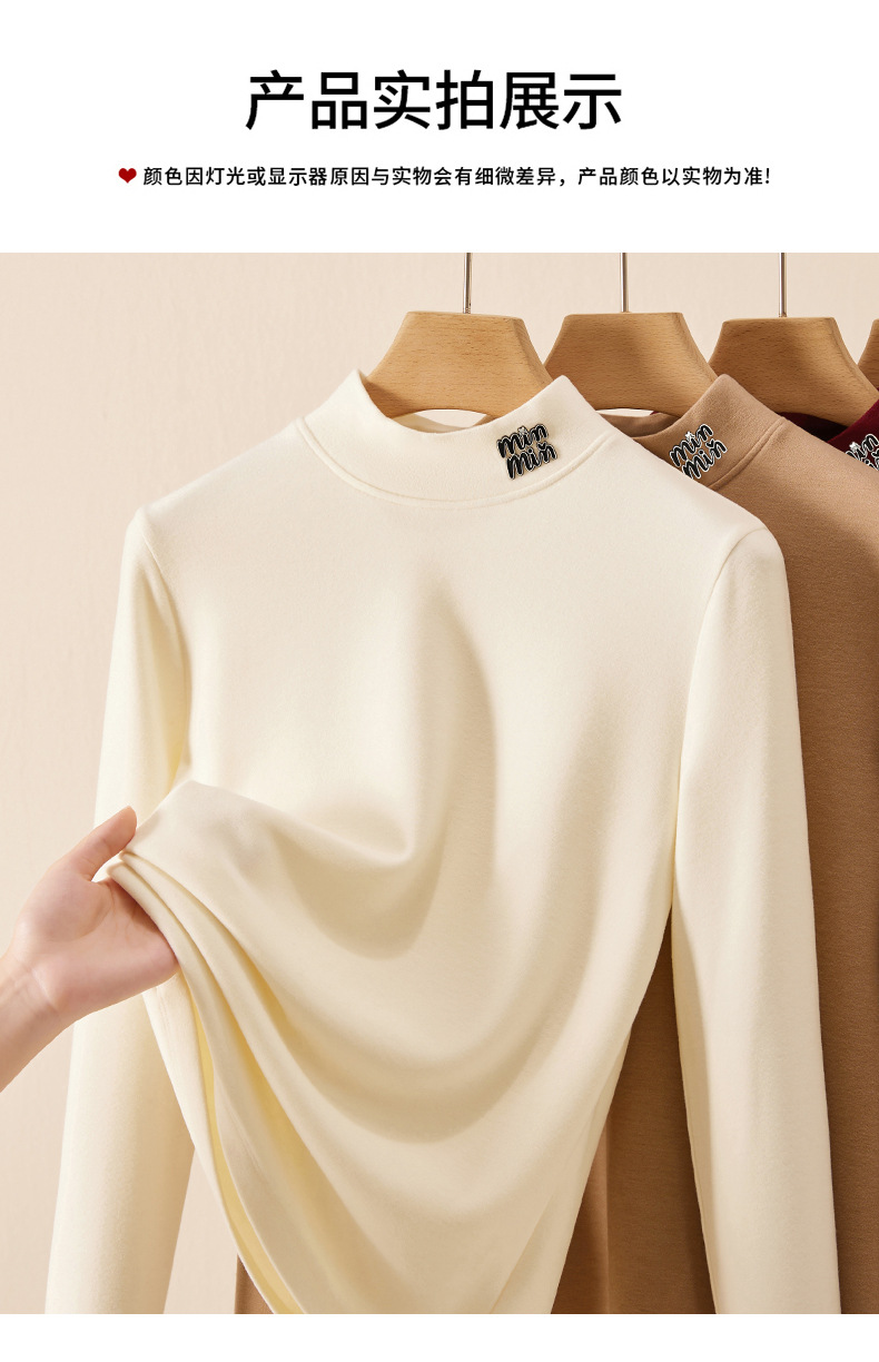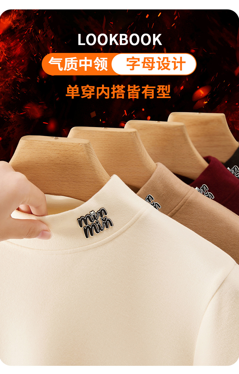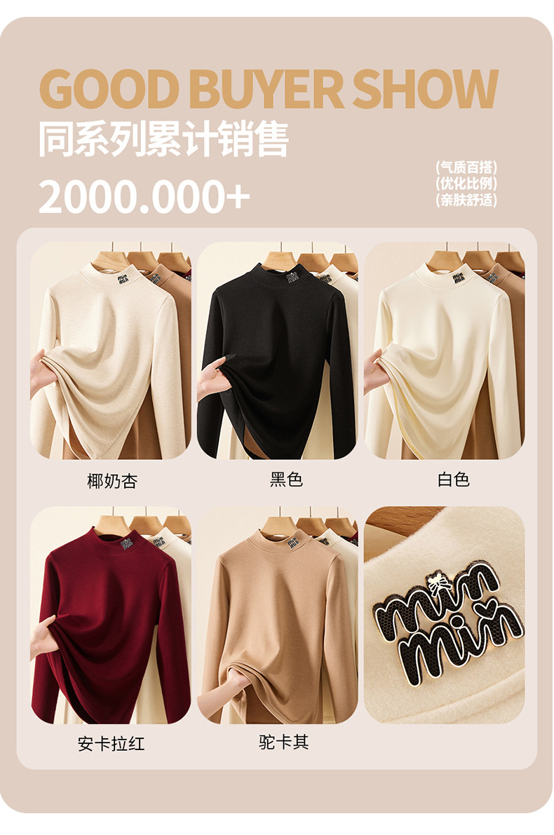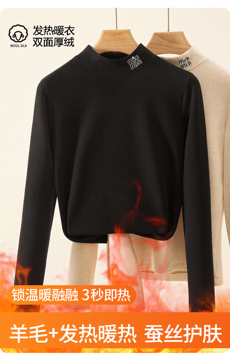 丁摩 新款半高领打底衫女秋冬内搭加绒加厚含蚕丝羊毛保暖中领上衣5ZF-M973