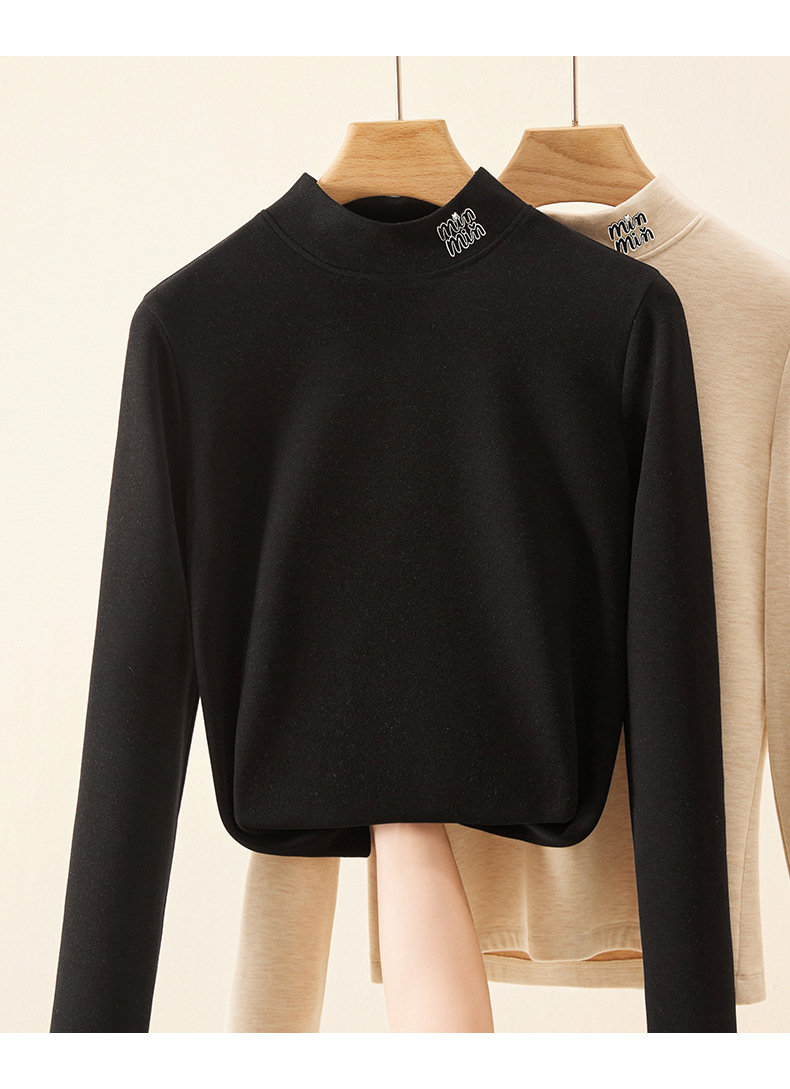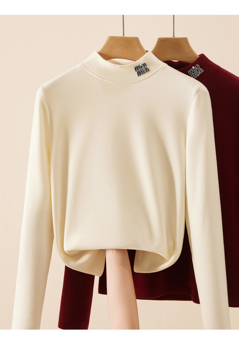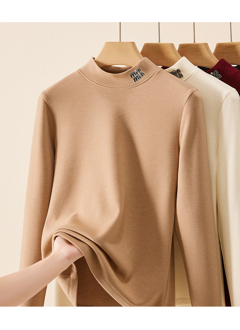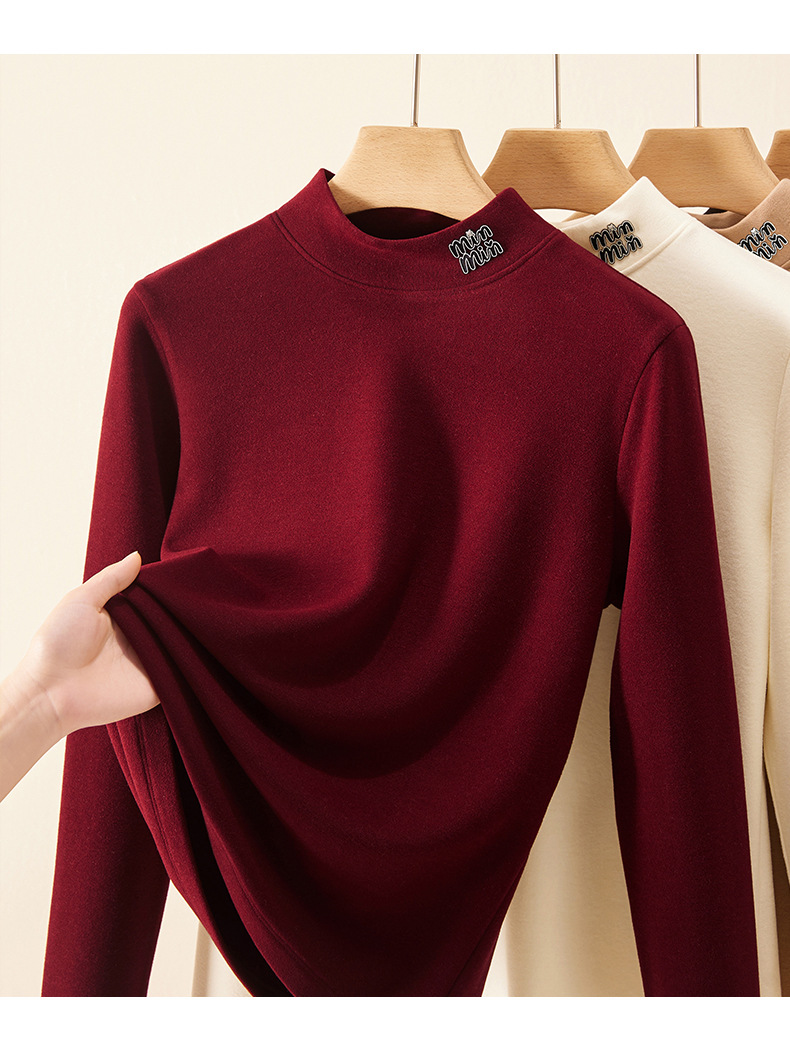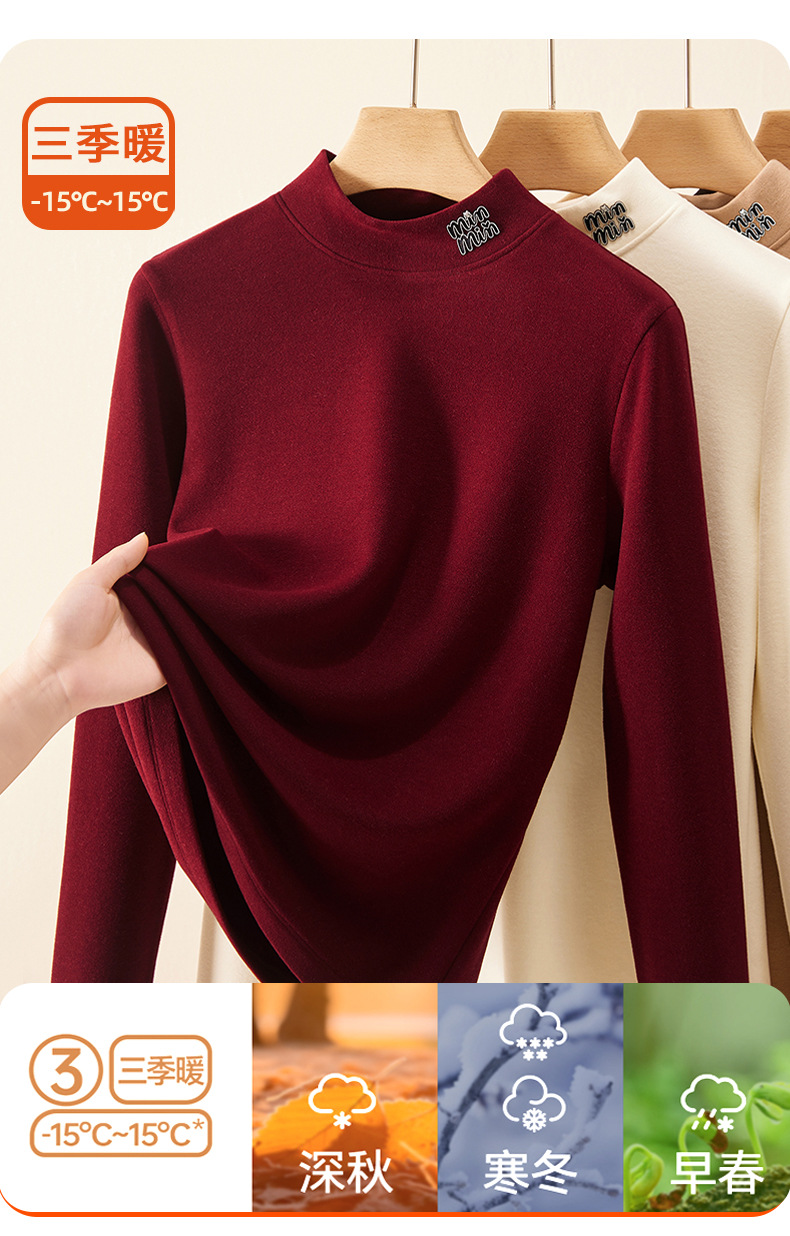 丁摩 新款半高领打底衫女秋冬内搭加绒加厚含蚕丝羊毛保暖中领上衣5ZF-M973