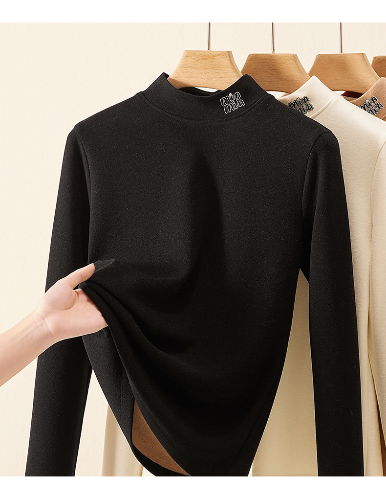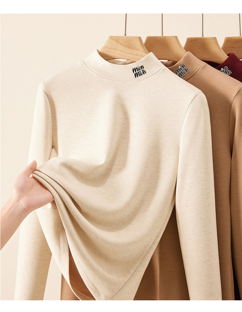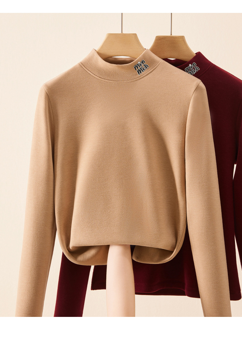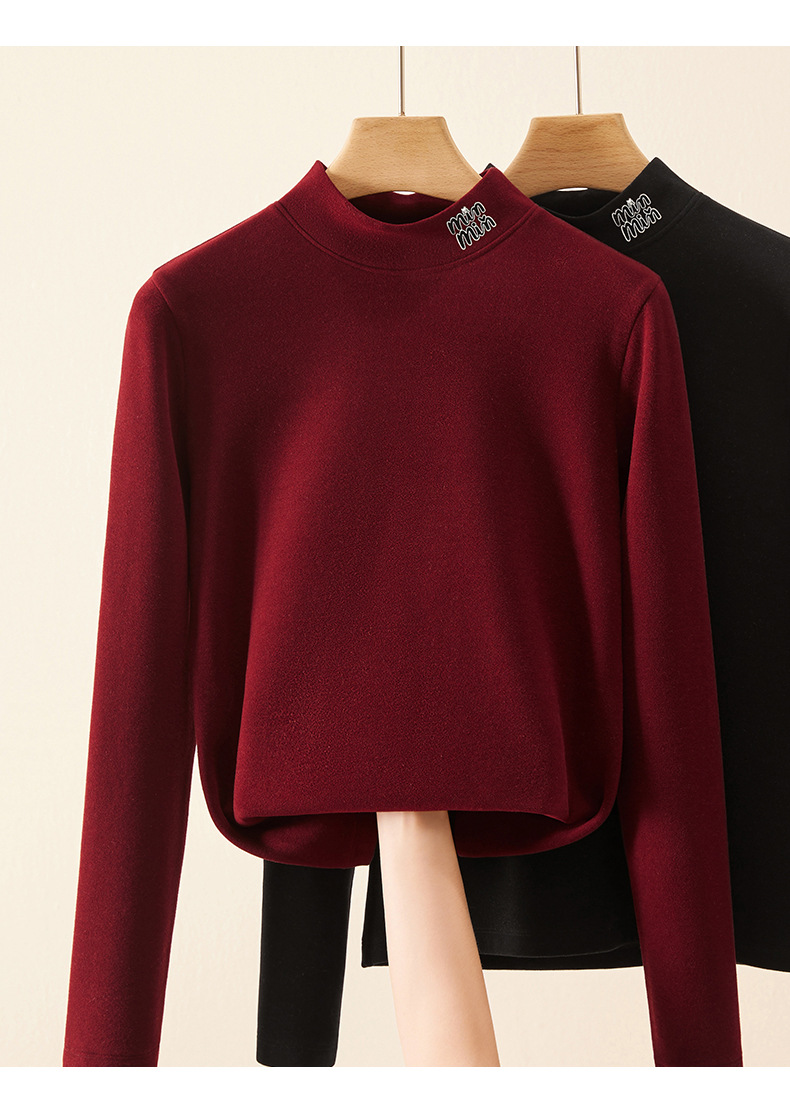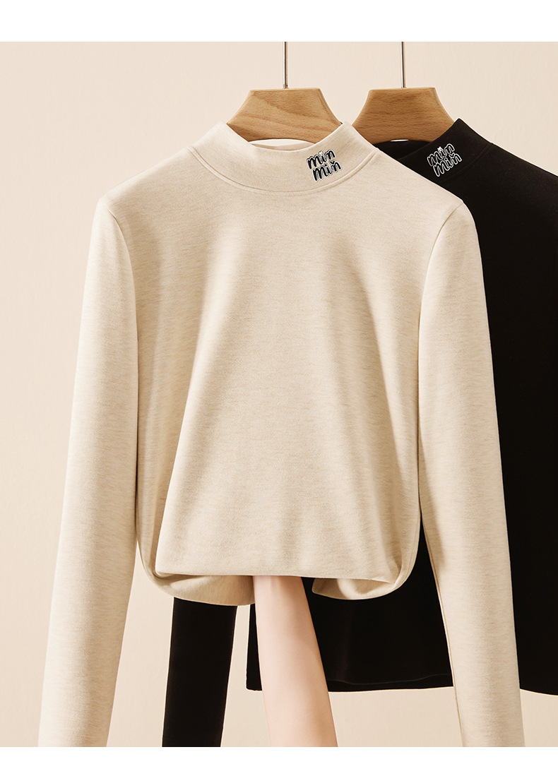 丁摩 新款半高领打底衫女秋冬内搭加绒加厚含蚕丝羊毛保暖中领上衣5ZF-M973