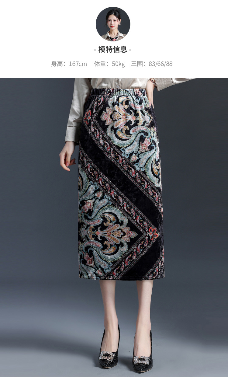 印花中长款通勤优雅时尚包臀裙,秋冬款高腰修身气质半身裙MYX-6713