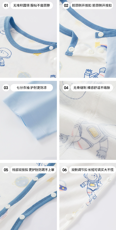 【贝肽斯】婴儿衣服夏季宝宝连体衣纯棉空调服哈衣长袖睡衣夏款七分袖