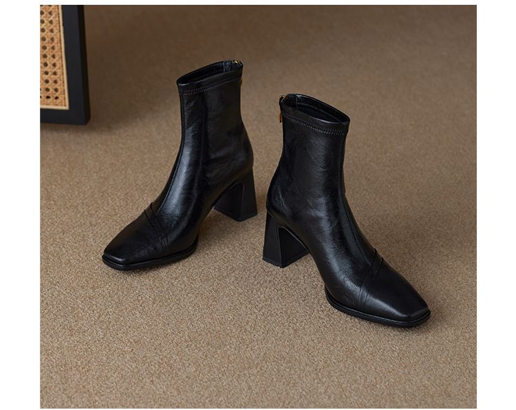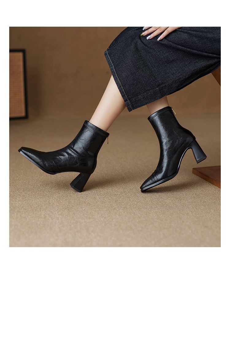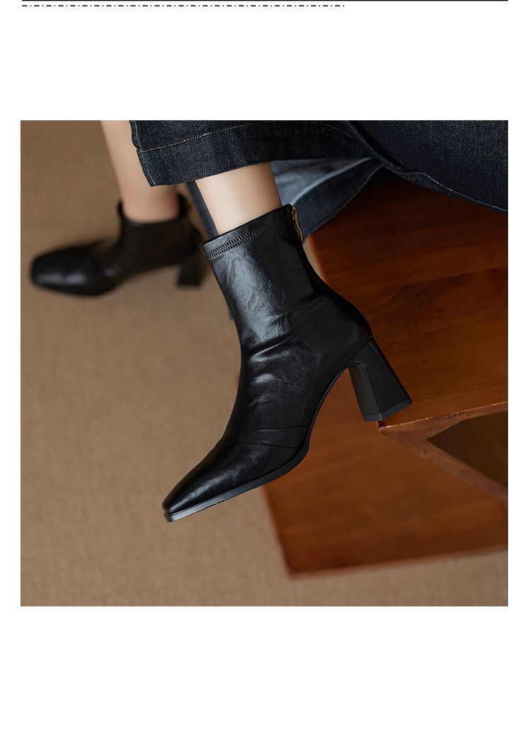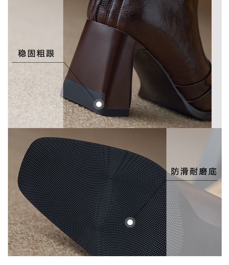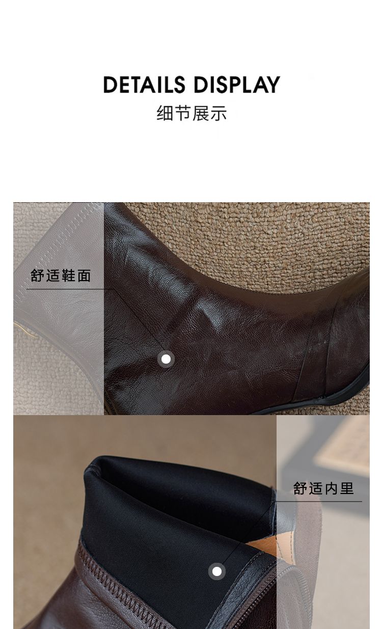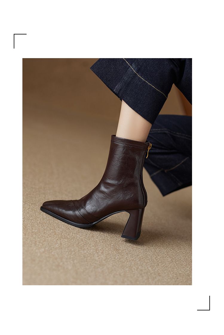 【预售5天】法式复古美拉德棕色弹力瘦瘦短靴秋冬新款时尚方头粗跟高跟单靴b7296