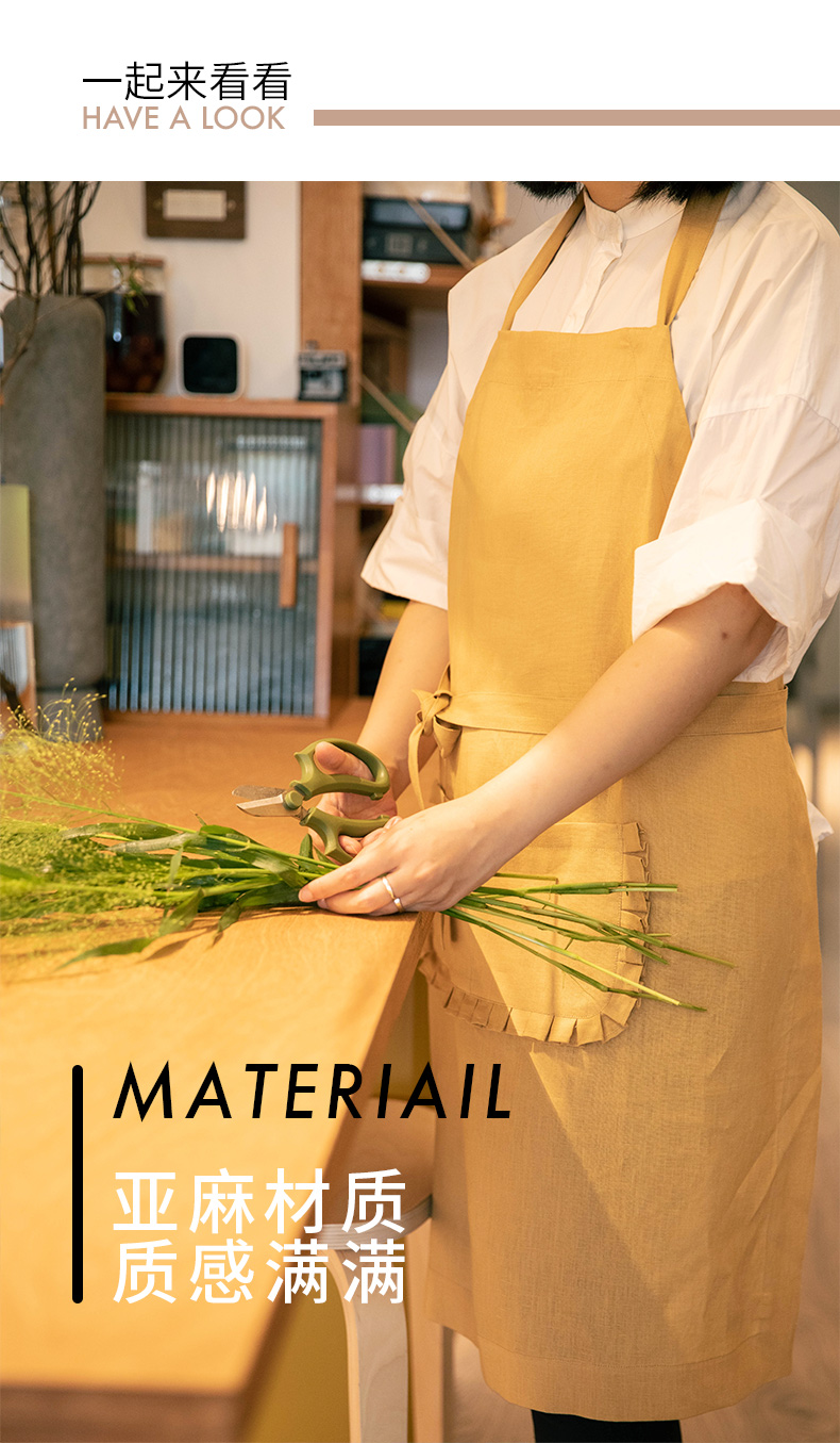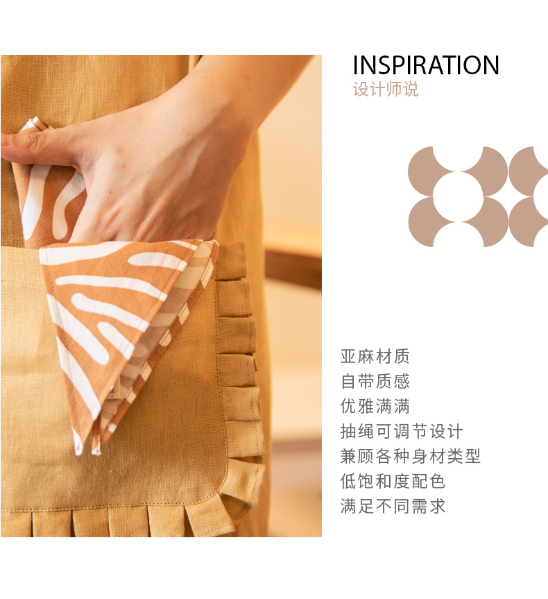 暖阳亚麻三色围裙厨房家用新款超好看围裙