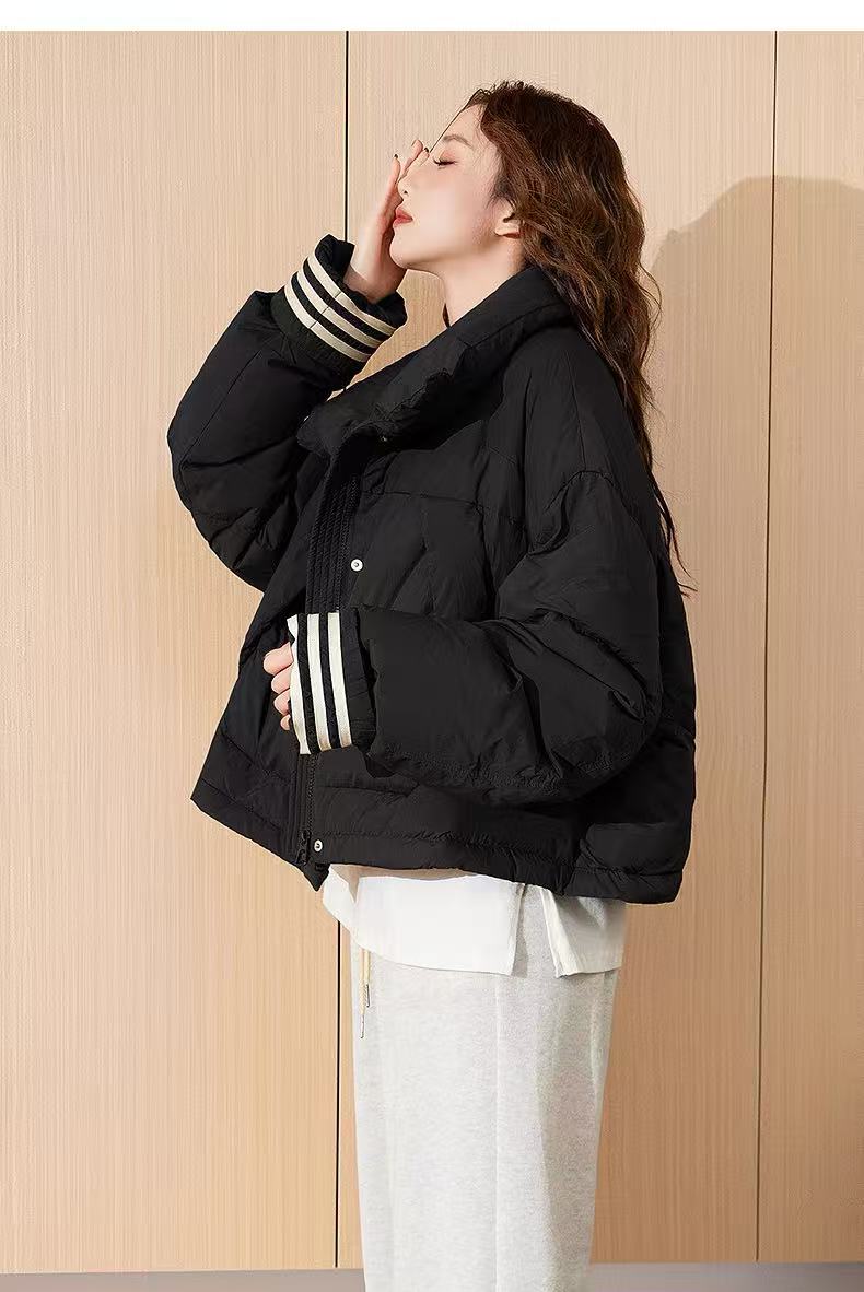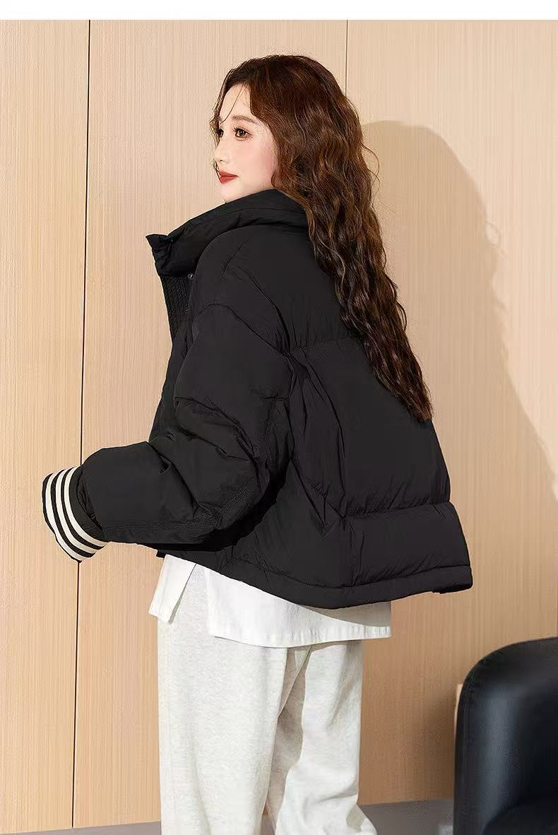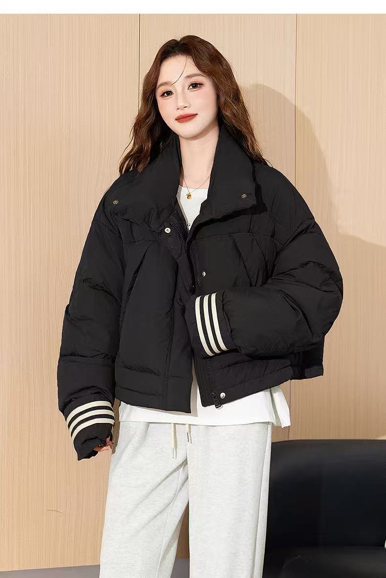 蓬松保暖【羽绒服】韩版小泡芙卷边袖可抽绳短款面包羽绒服-喜出