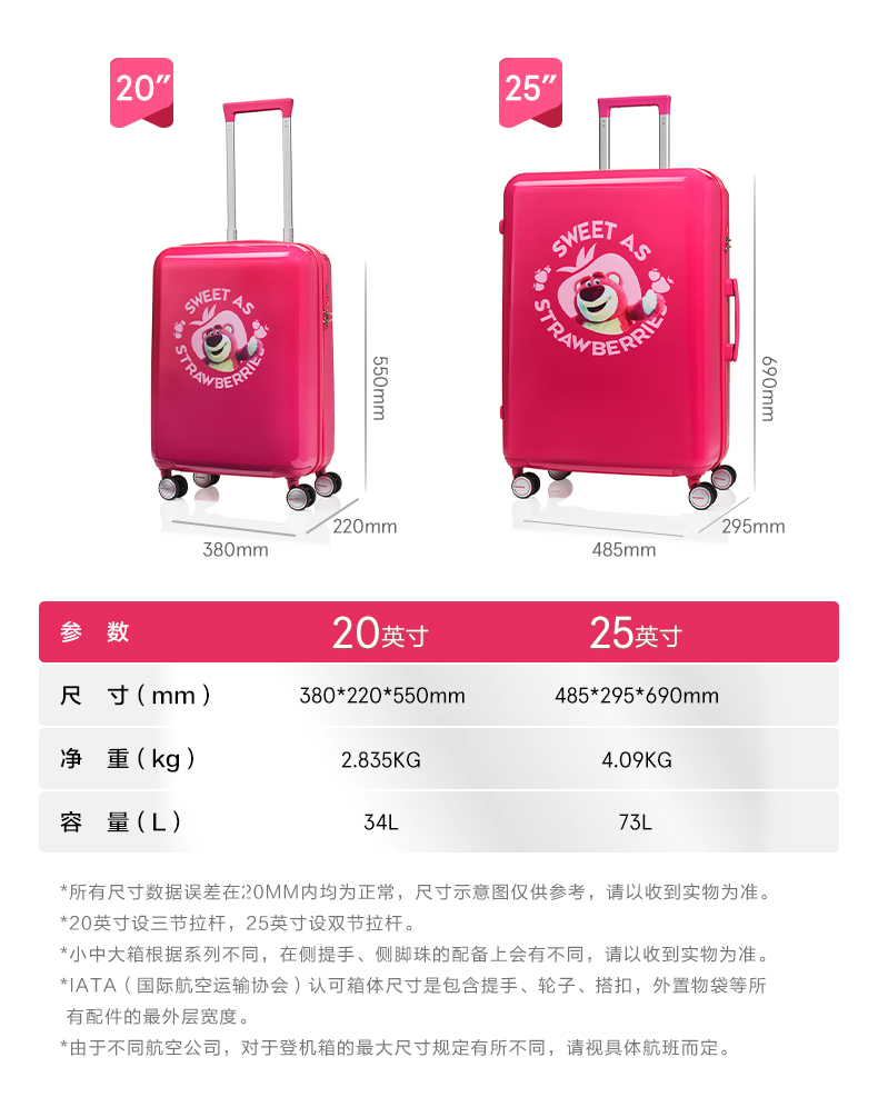 Samsonite新秀丽 迪士尼联名草莓熊行李箱旅行箱登机箱NX8
