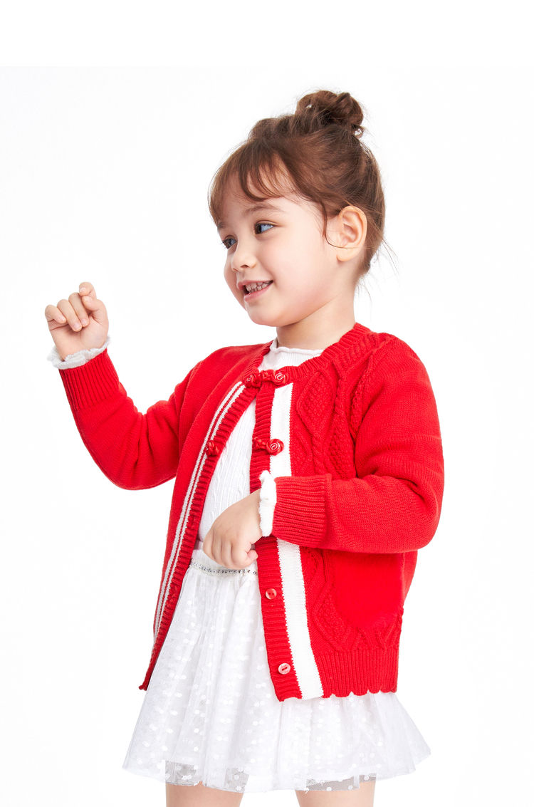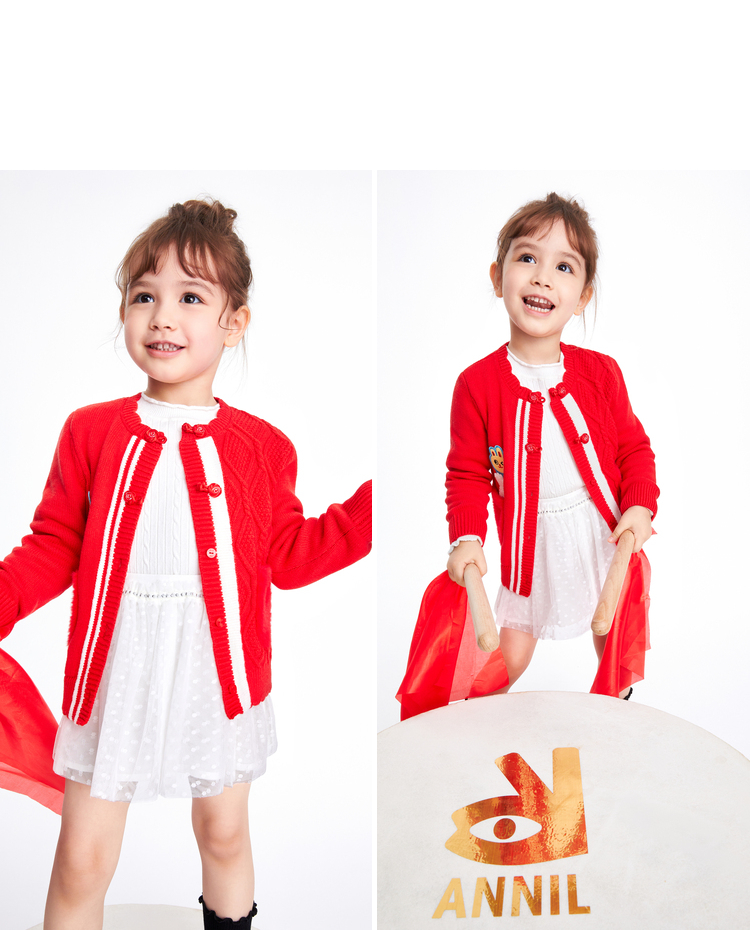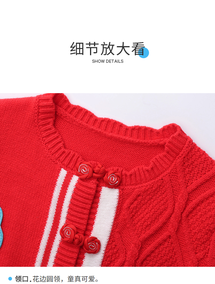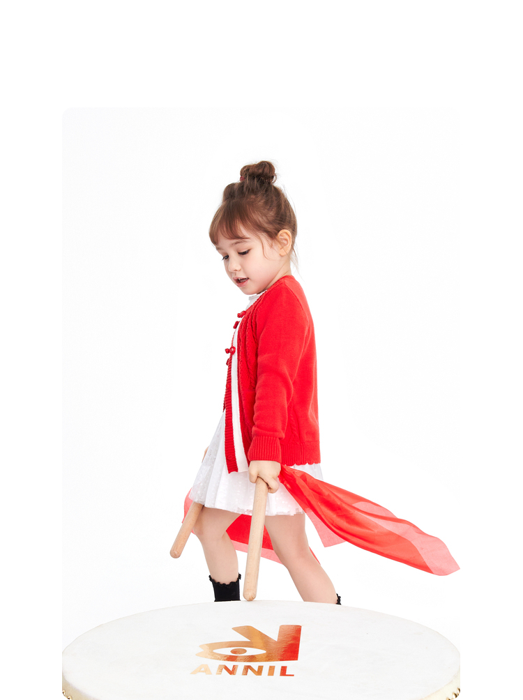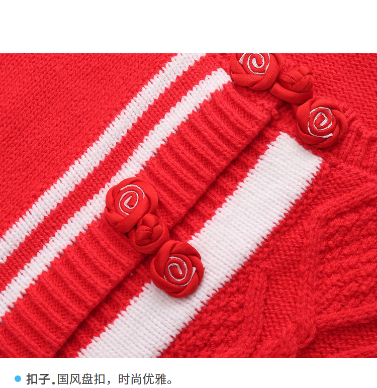 【新年红】女童开衫毛衣秋季新款小童宝宝国风保暖红色针织衫安奈儿童装TG314022