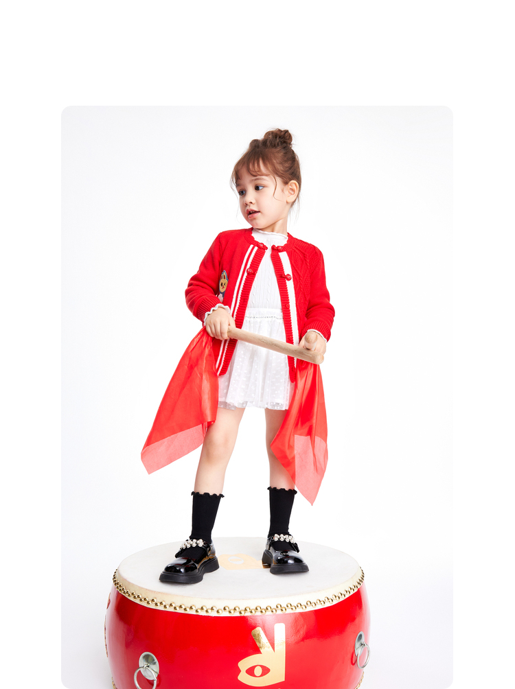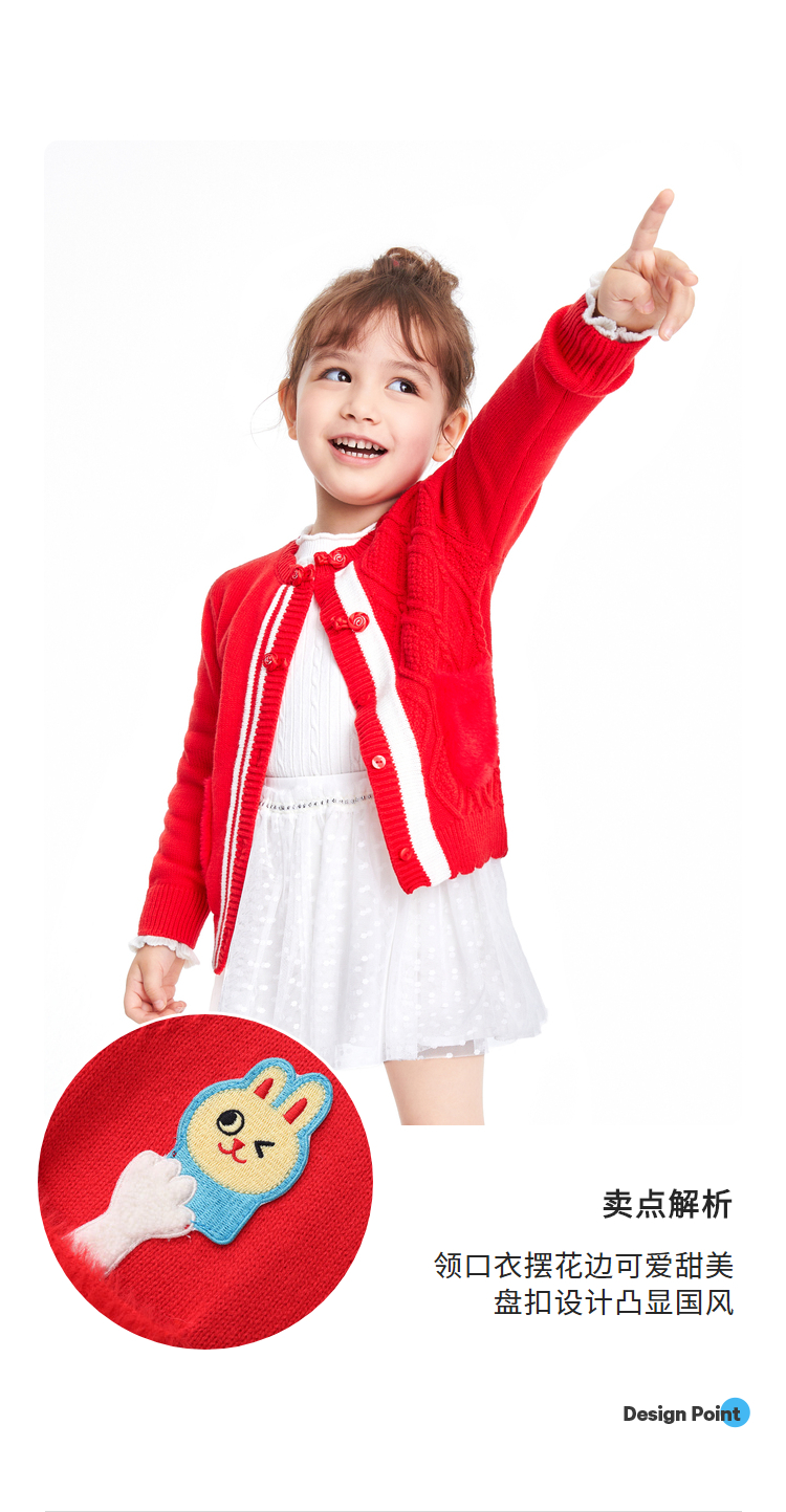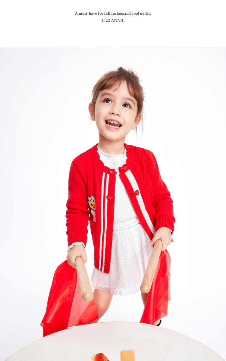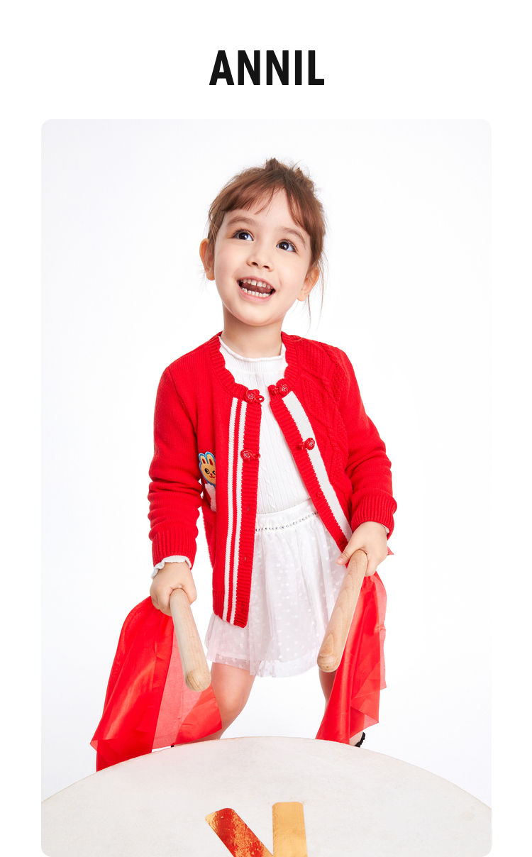 【新年红】女童开衫毛衣秋季新款小童宝宝国风保暖红色针织衫安奈儿童装TG314022