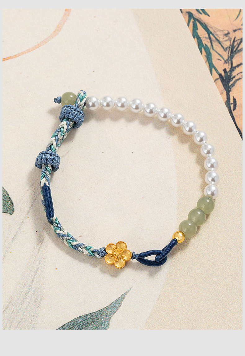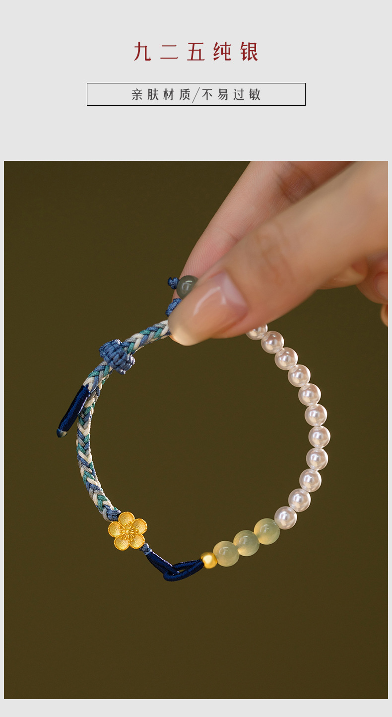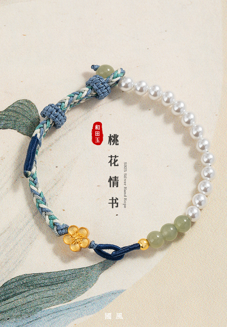 【预售3天】原创桃花纯银925和田玉手绳新中式国潮编织花朵手饰手链S0568