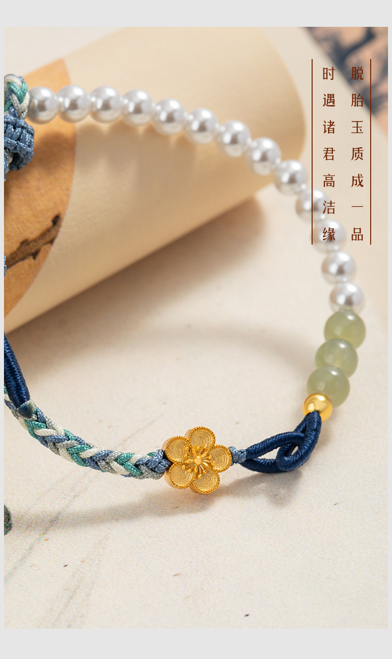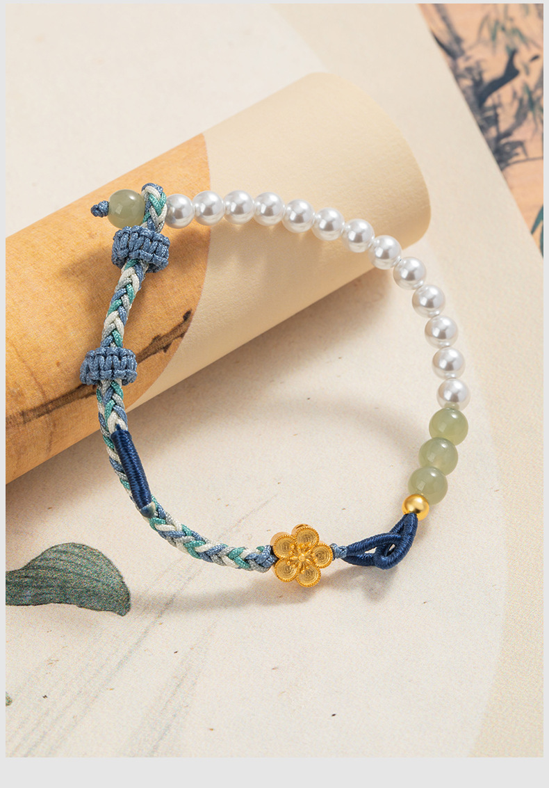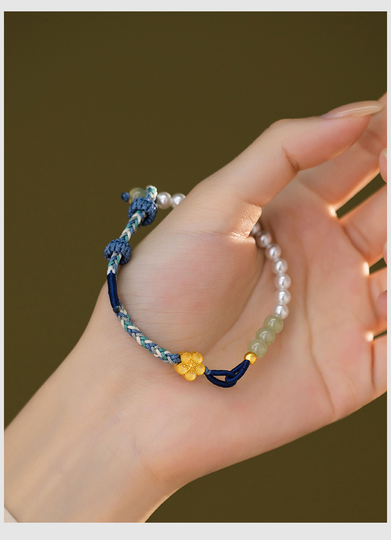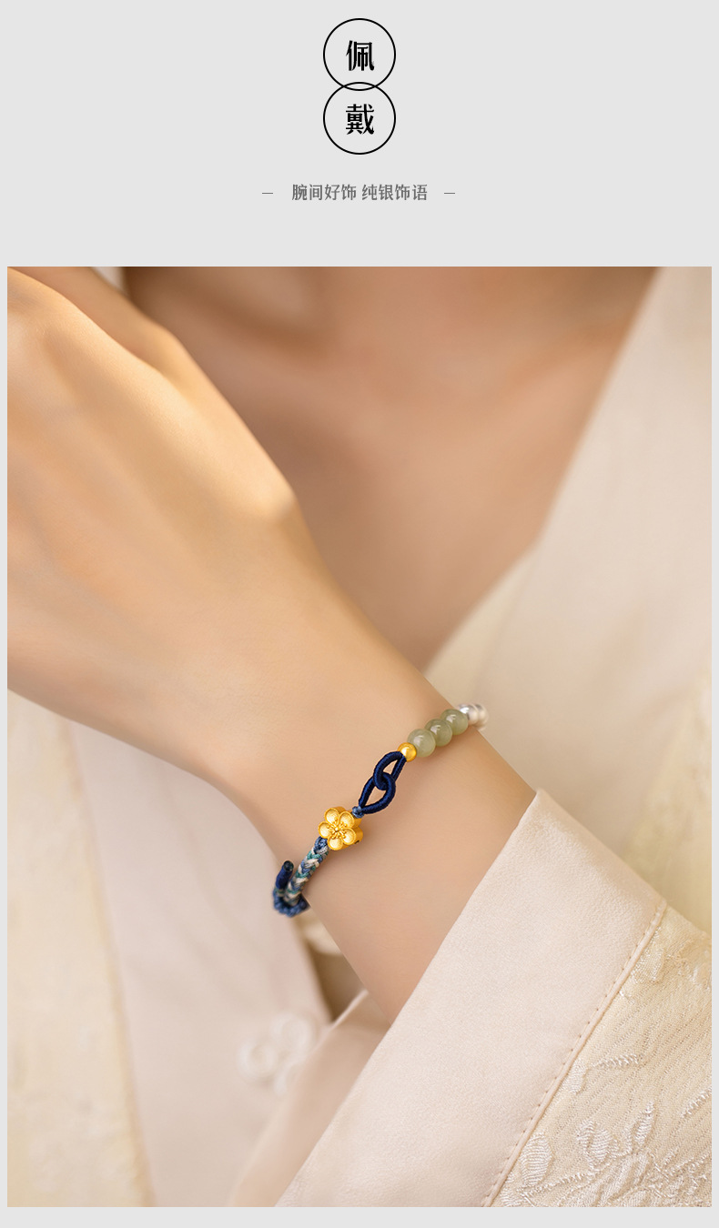 【预售3天】原创桃花纯银925和田玉手绳新中式国潮编织花朵手饰手链S0568