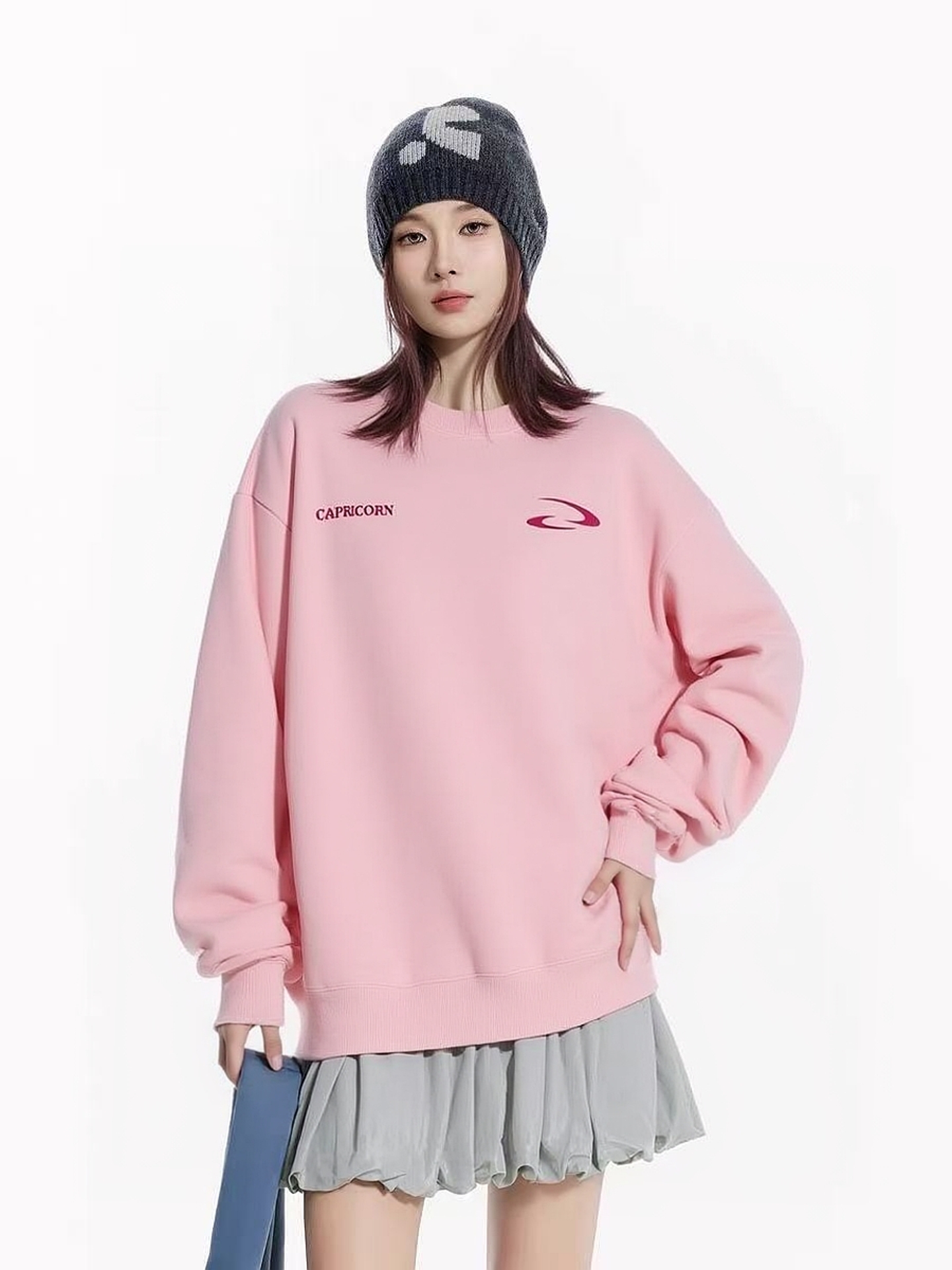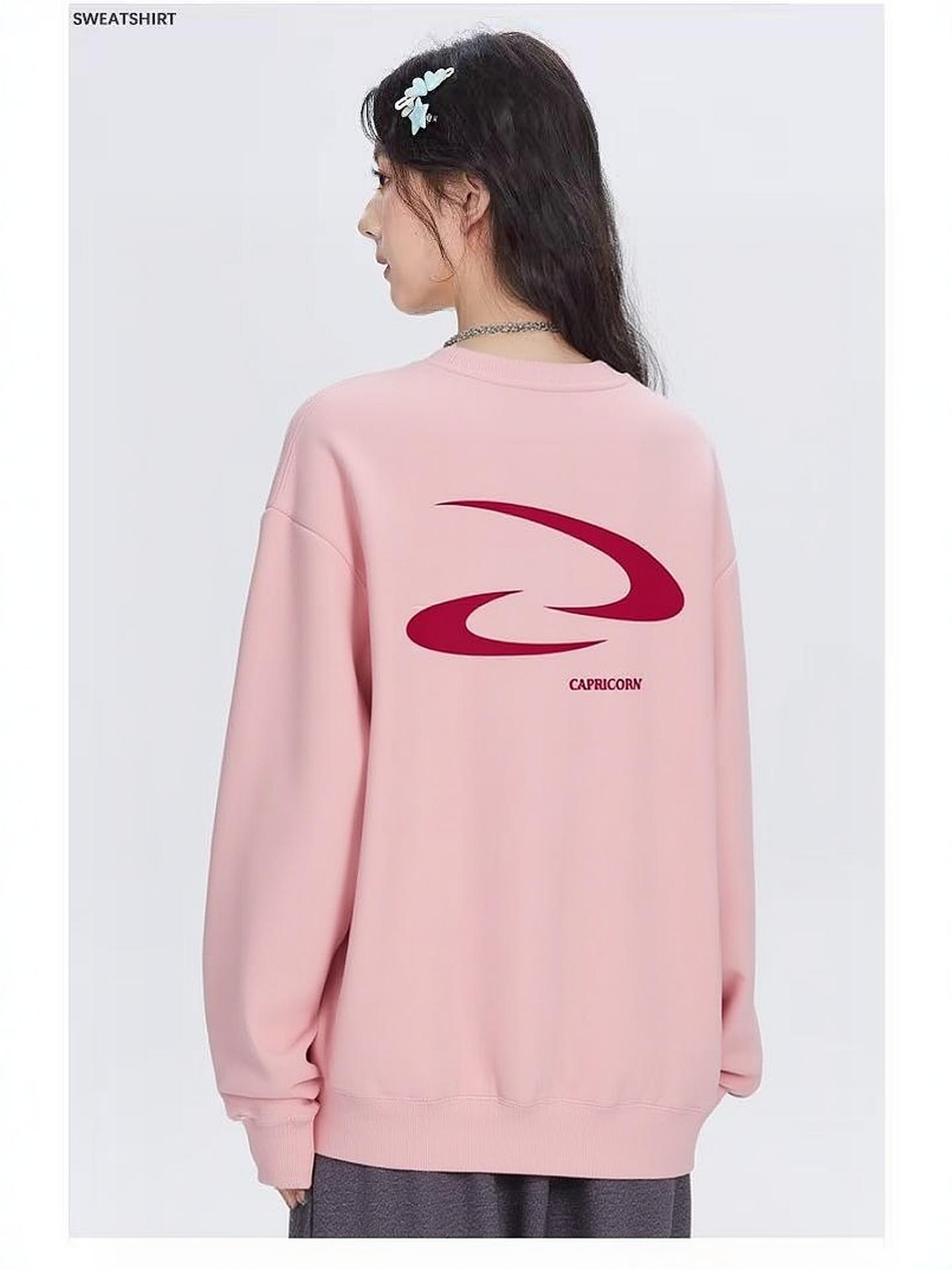 🔥🔥【潮牌卫衣】圆领牛奶绒~双面印花字母情侣宽松加绒卫衣-喜出