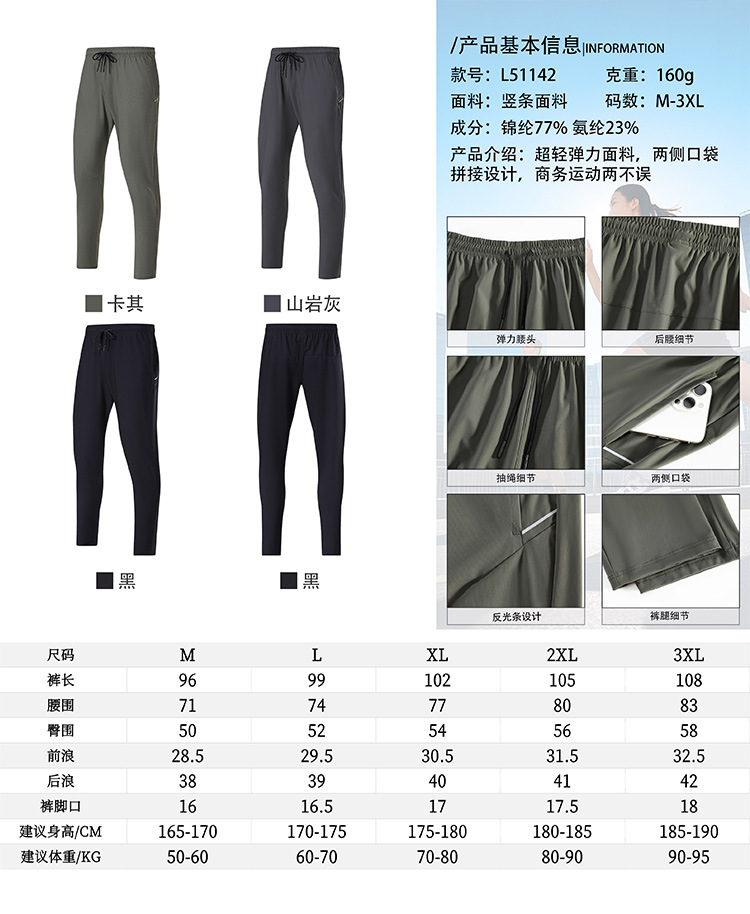 跃牌【跃LEAP-ACTIVE】 男夏运动休闲跑步健身长裤运动直筒九分裤L51142