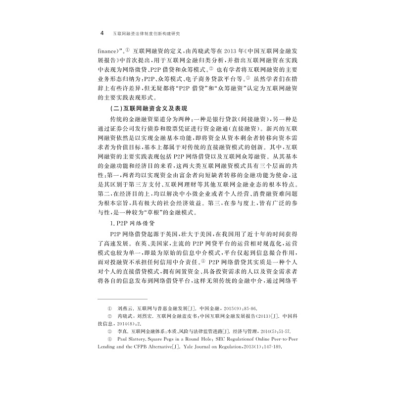 近年来,互联网金融作为一种新的金融业态出现,在带来融资方式创新的同时,也给我国目前的金融法律制度和监管制度提出了新的挑战。P2P网络借贷和股权众筹融资等正是互联网融资的典型业态。本书主要梳理了互联网融资的基本概念、特征和表现形式,分析了互联网融资法律制度的现状与问题,论证了互联网融资法律制度创新构建的可能性,从而提出互联网融资法律制度创新的重点环节。以网贷为例,剖析了网络借贷的基本概念、法律制度构建基础,进而从网络借贷中介机构市场准入、经营范围与负面清单、风险管控、市场退度、监管体制等角度做重点探讨,同时提出了对应的网络借贷法律制度创新建议。