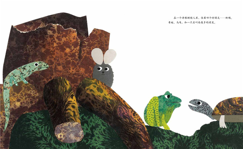 蜥蜴、青蛙、乌龟和老鼠西奥多一起住在一个老橡树墩儿里。大家都有各自擅长的本领,除了西奥多,他说不上自己擅长什么,还整天怕这怕那。有一天,他发现了一个会说话的蘑菇,于是便告诉伙伴们蘑菇发出了指令:所有人都应该尊西奥多为王。大家信以为真,直到谎话被揭穿的那天……