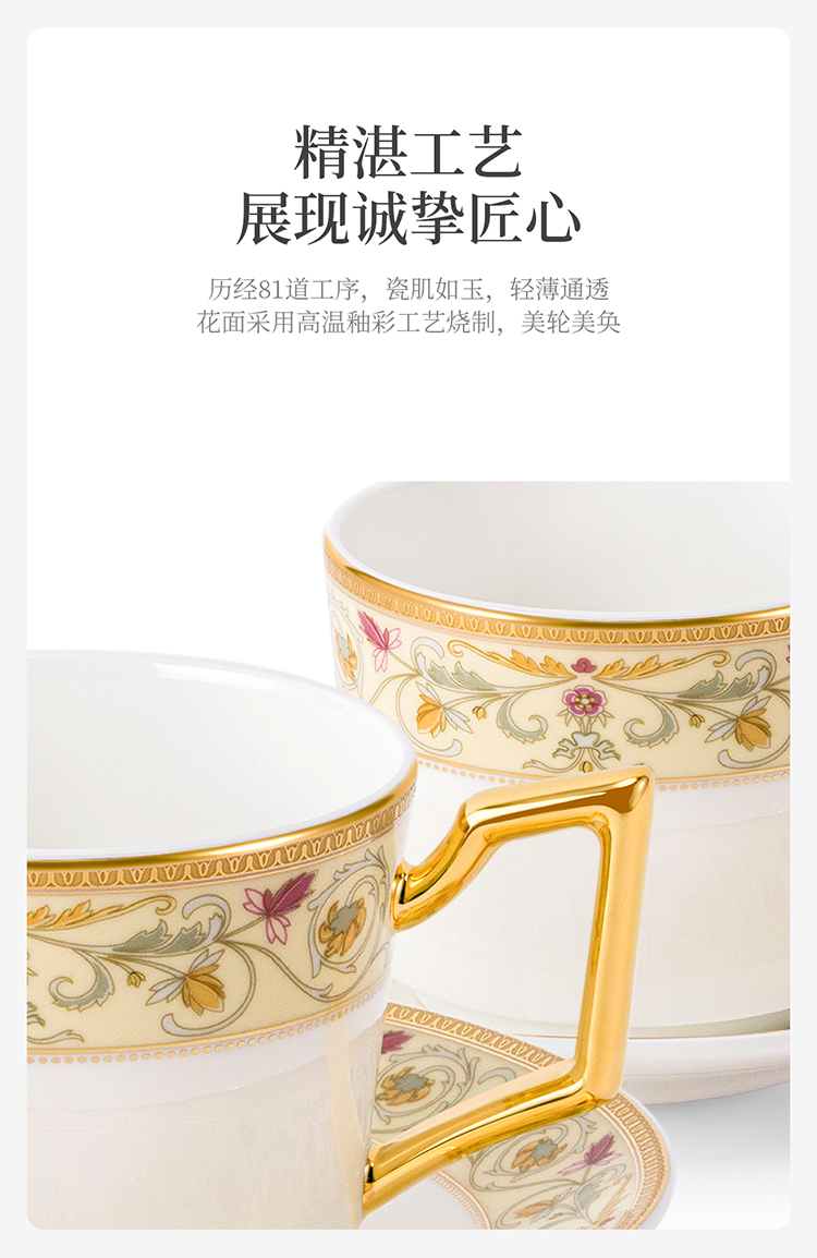 【玛戈隆特】欧洲花园骨瓷咖啡杯礼盒装对杯套装精致下午茶杯子送礼