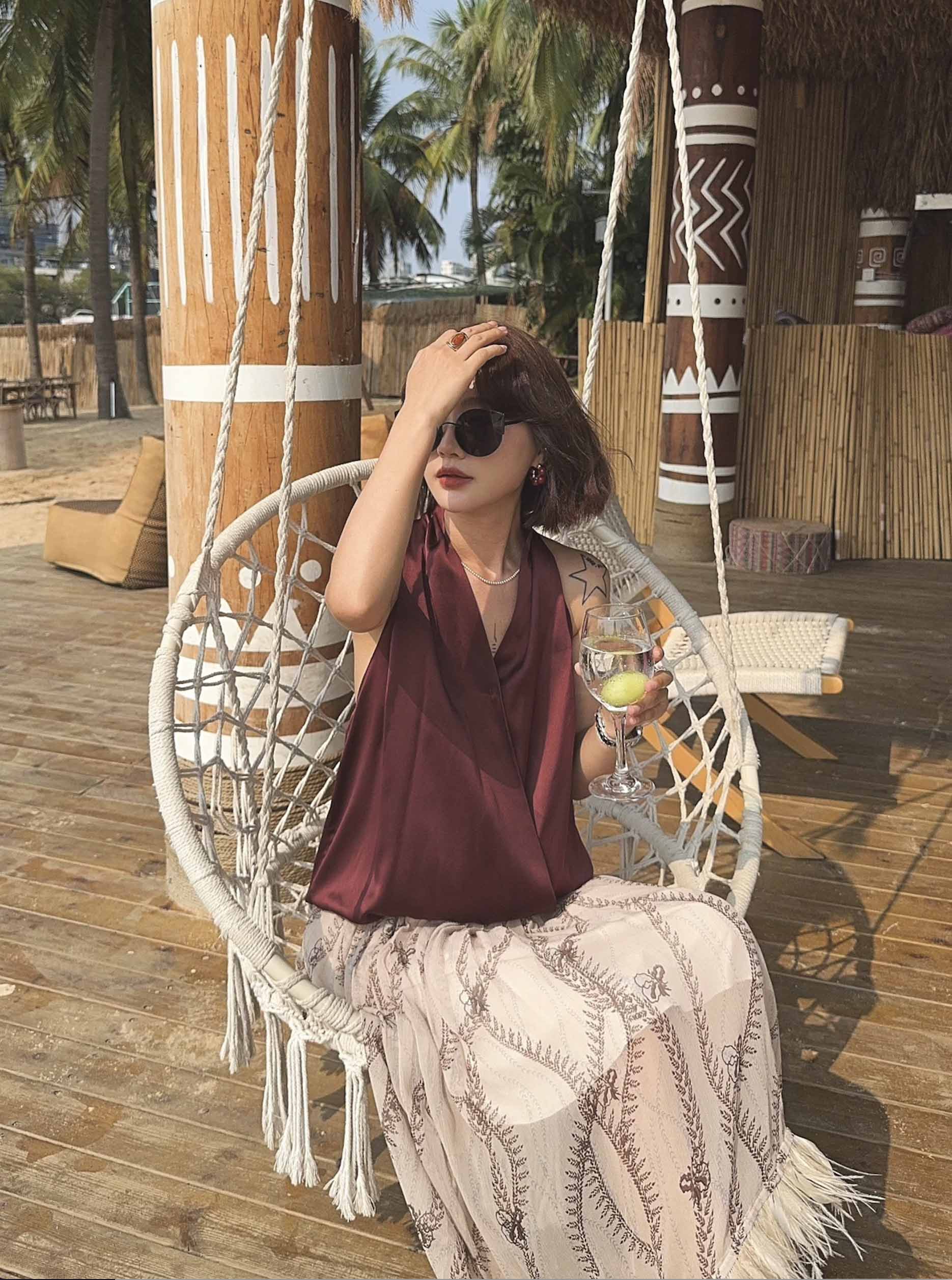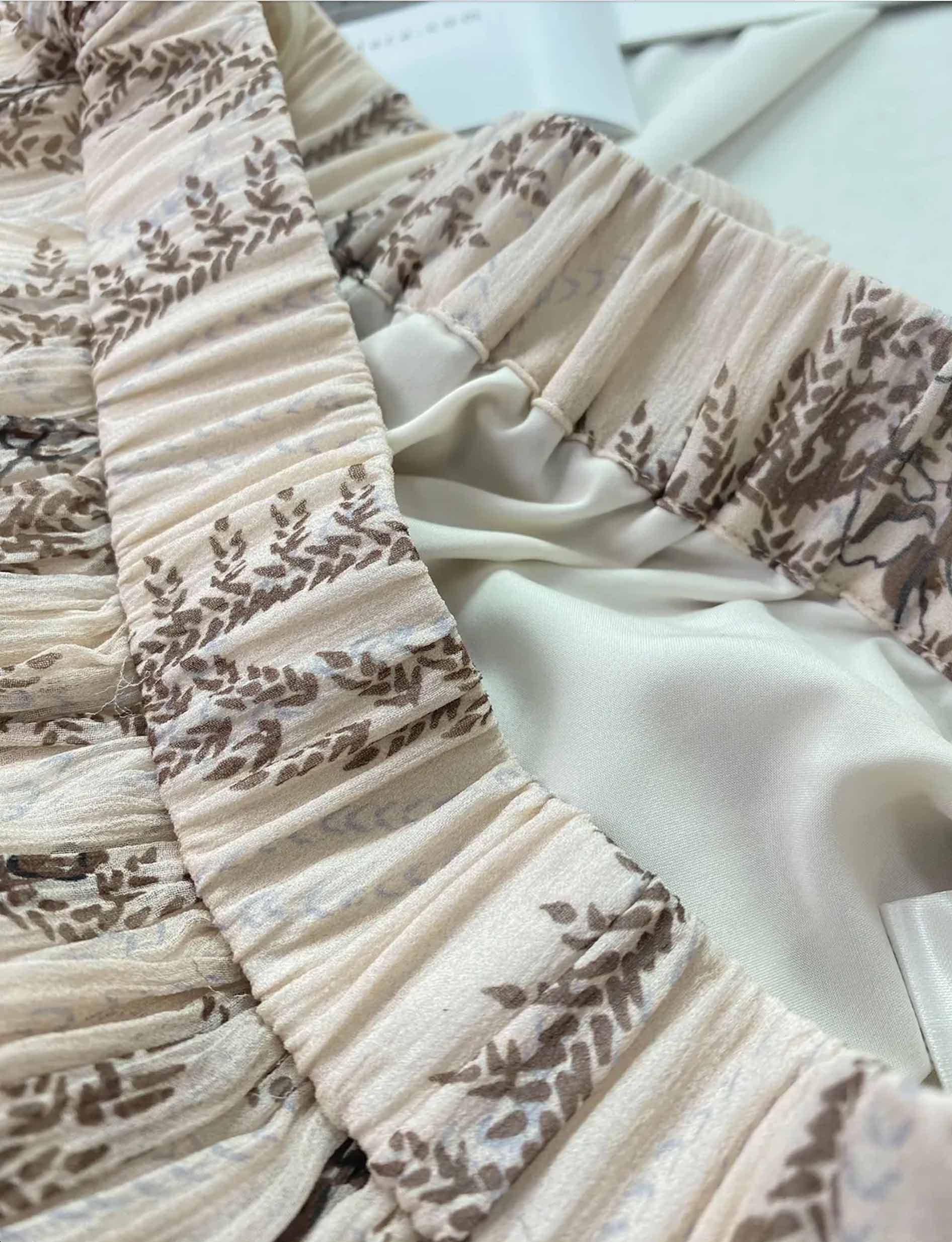 裙身面料为100%桑蚕丝,内衬面料为92%聚酯纤维+8%氨纶混纺而成🍃