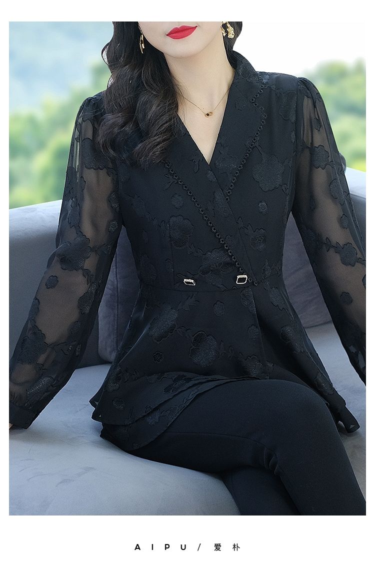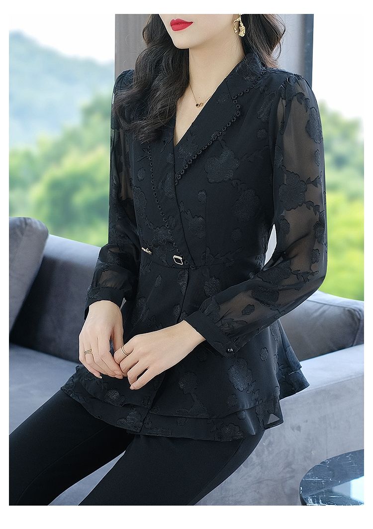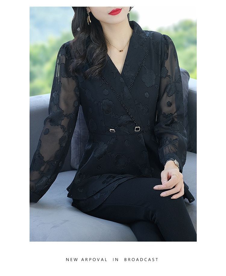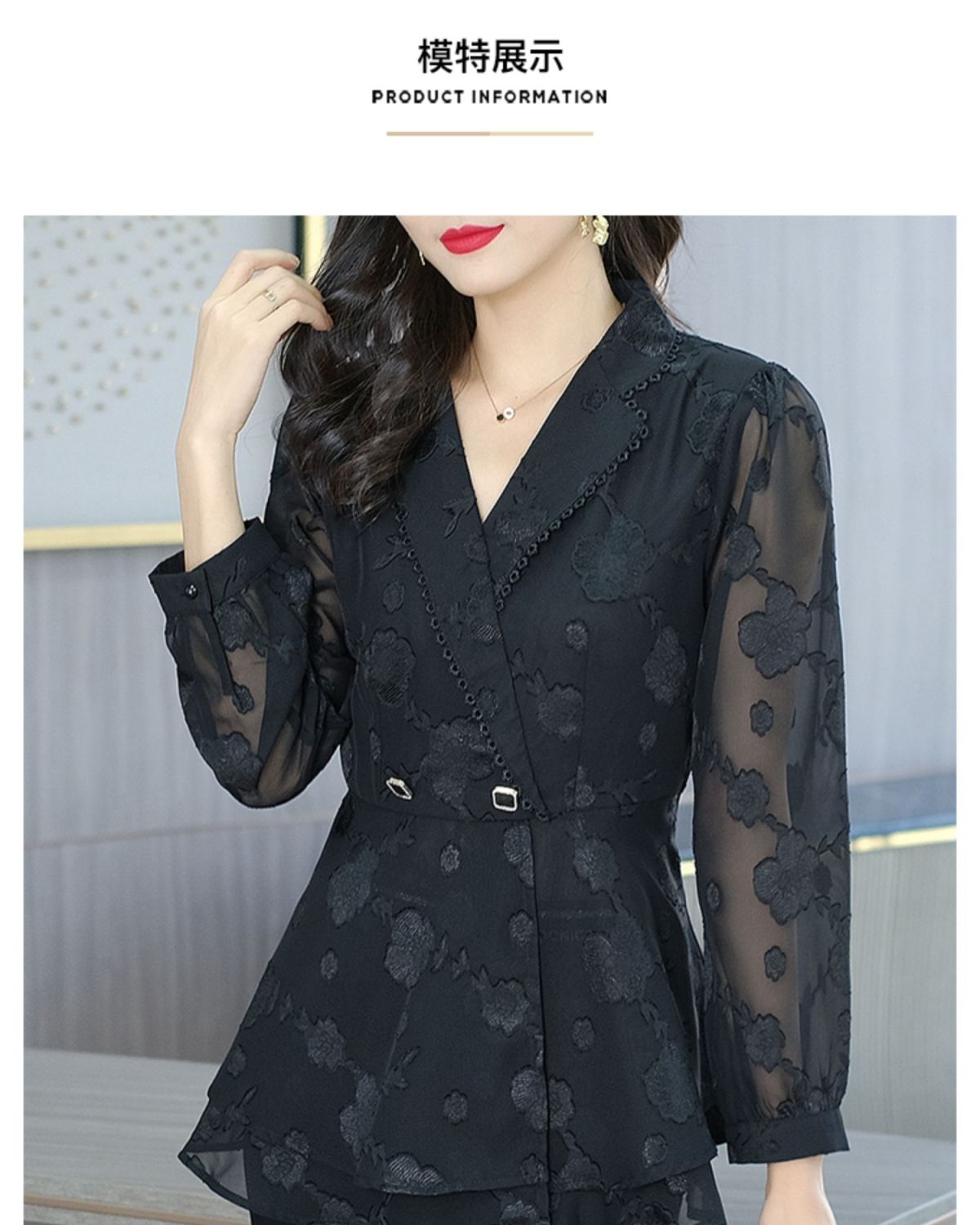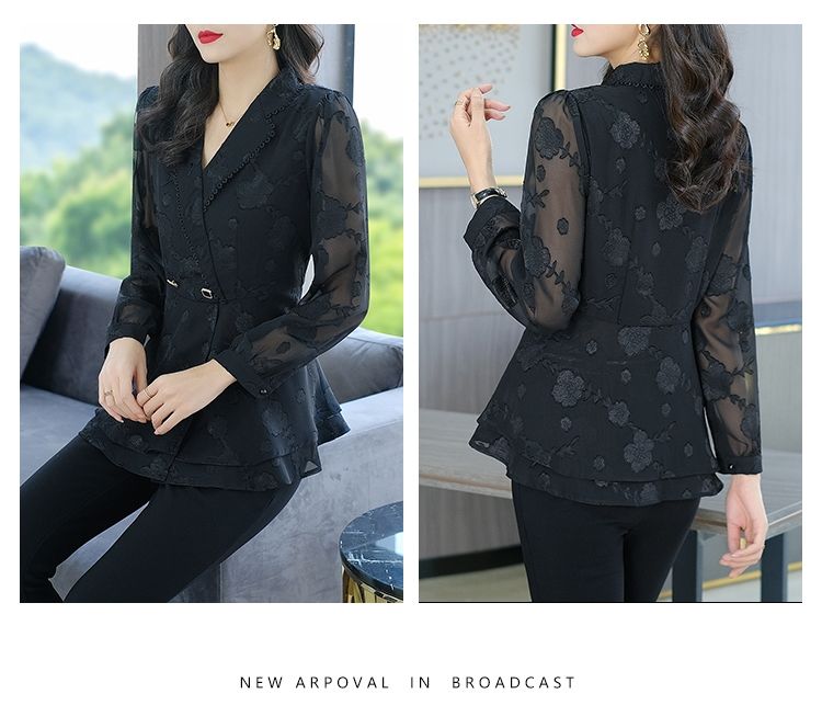 KQL-大码女装2023春季新款微胖mm显瘦上衣高级感时尚胖妹妹蕾丝衬衫女