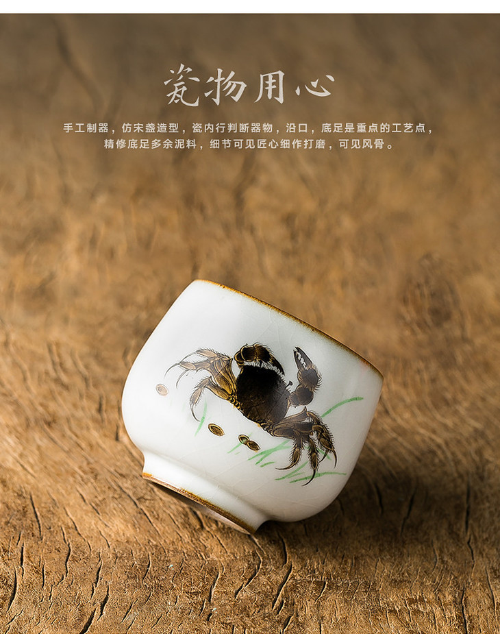 「汝窑手绘横行介士品茗杯」功夫茶杯 开片可养 景德镇手工陶瓷主人杯单杯