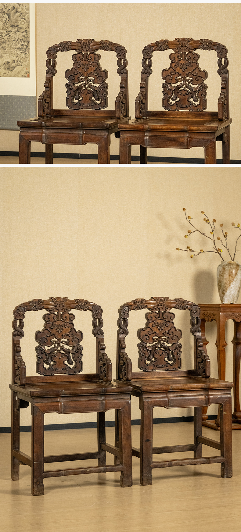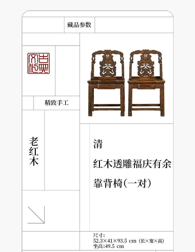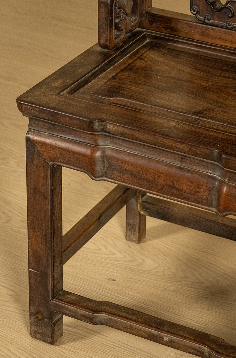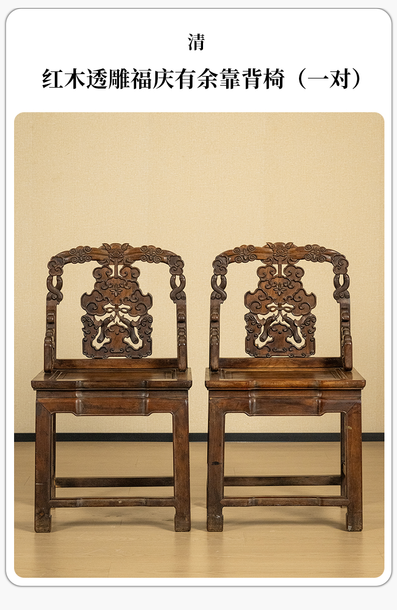 清 红木透雕福庆有余靠背椅(一对)