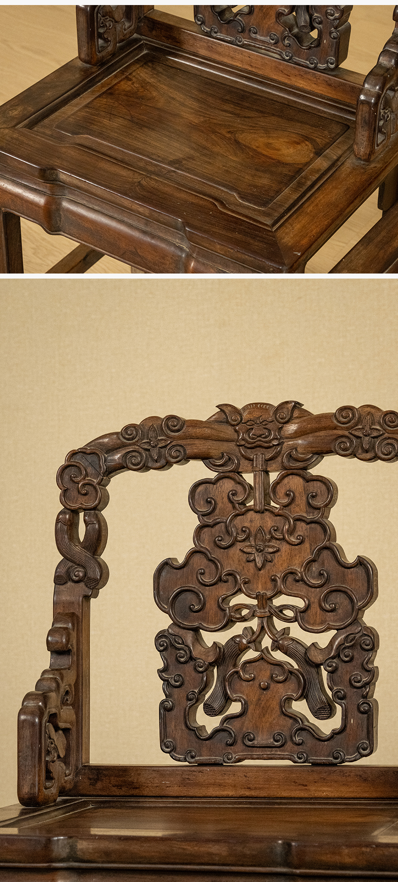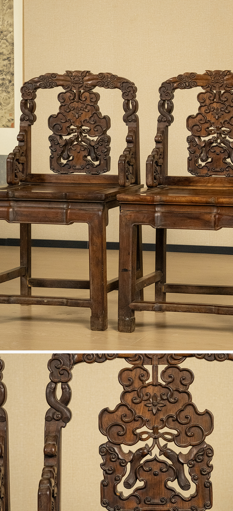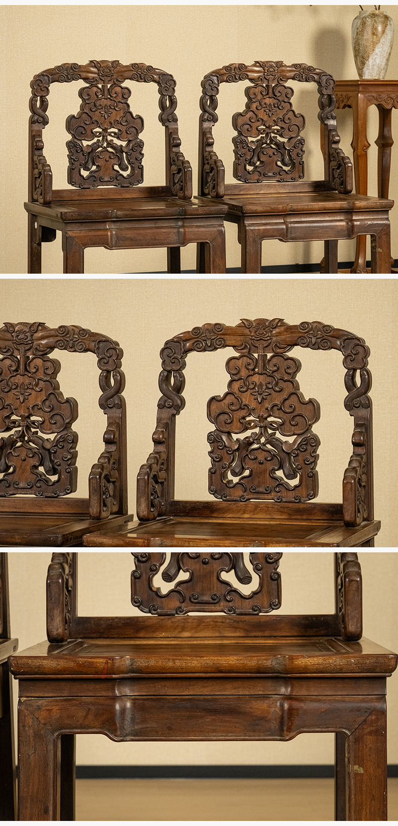 清 红木透雕福庆有余靠背椅(一对)
