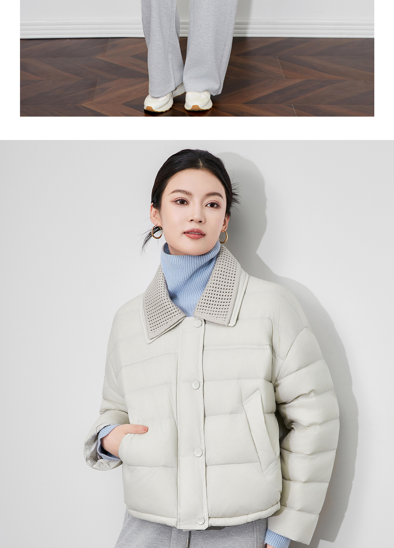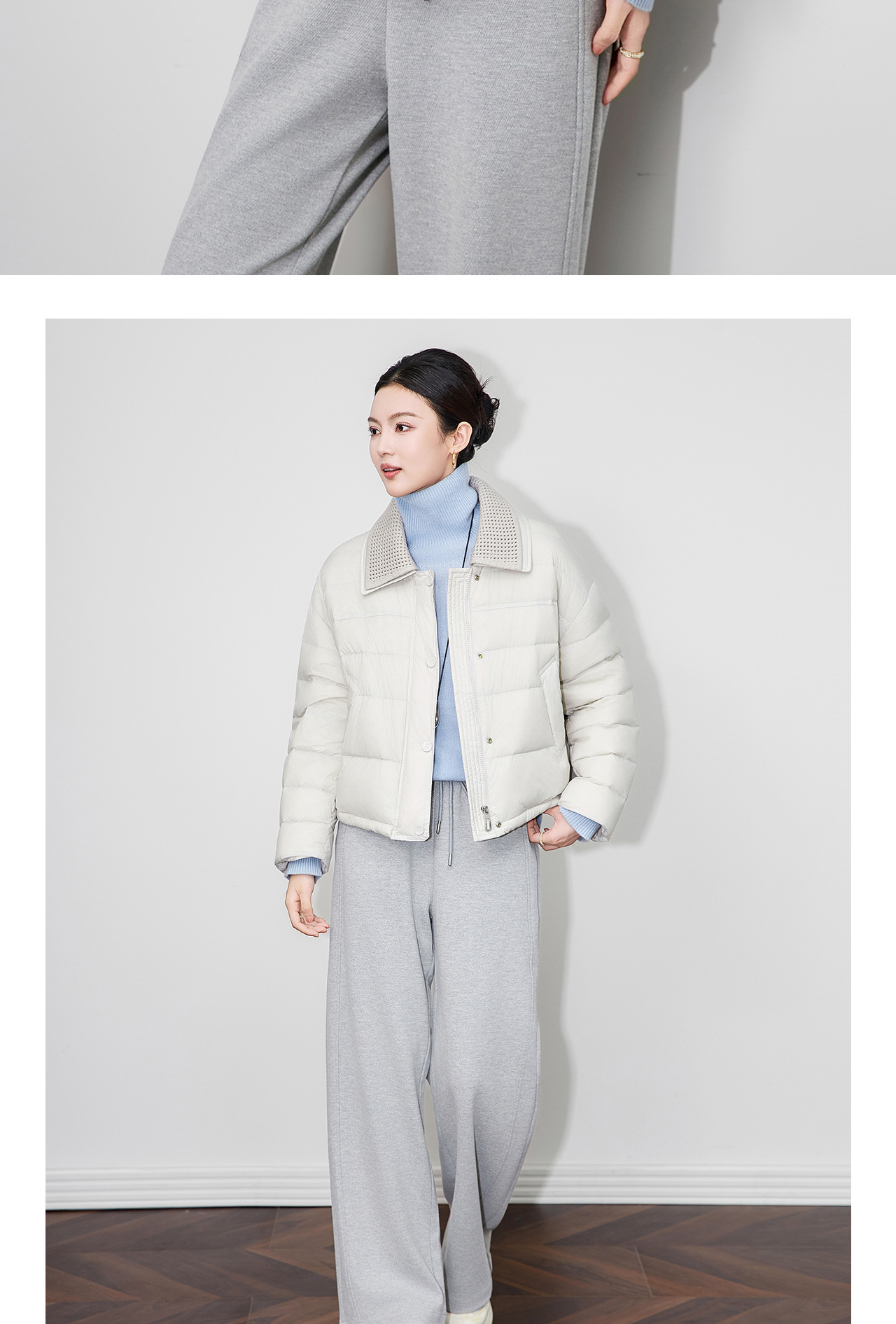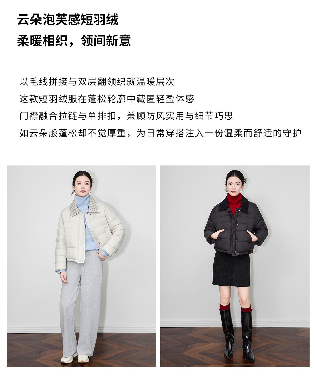 「高货wl」全新升级【铂金会员441/天猫599/差价158】(64550)洛诗琳撞料翻领90白鸭绒羽绒服2025冬季云朵泡芙保暖外套