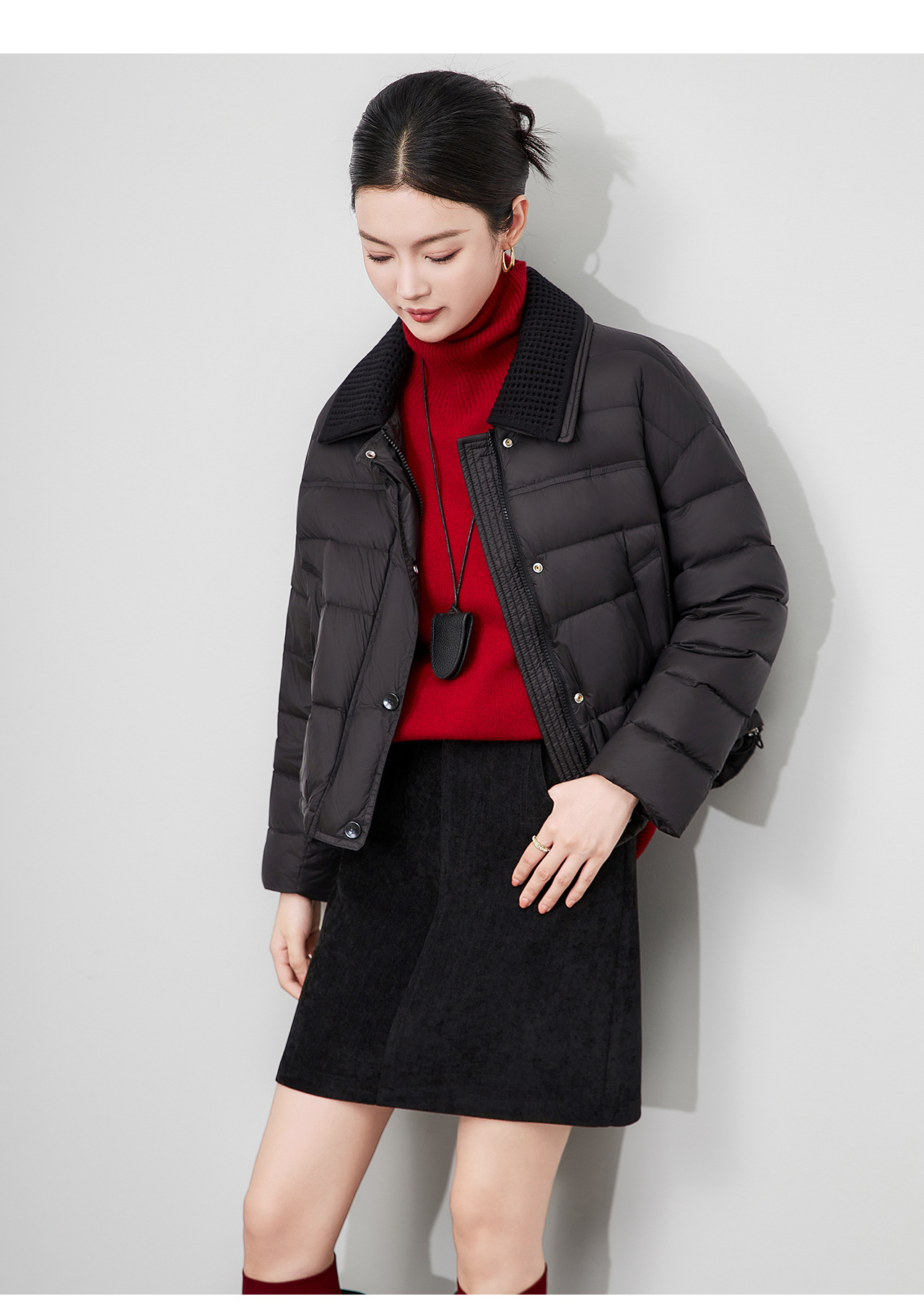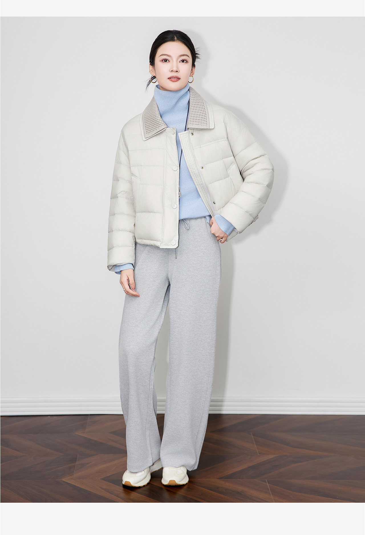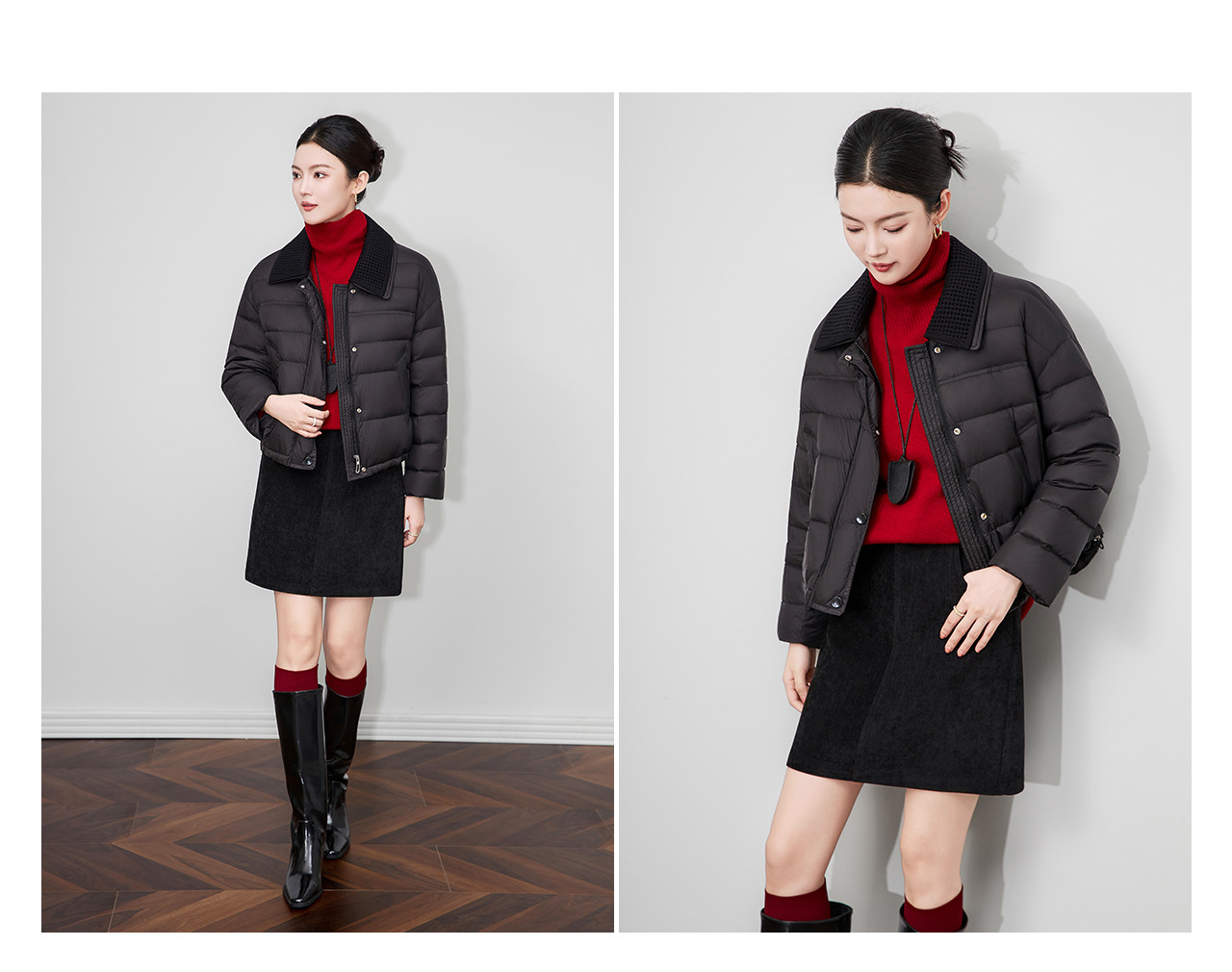 「高货wl」全新升级【铂金会员441/天猫599/差价158】(64550)洛诗琳撞料翻领90白鸭绒羽绒服2025冬季云朵泡芙保暖外套
