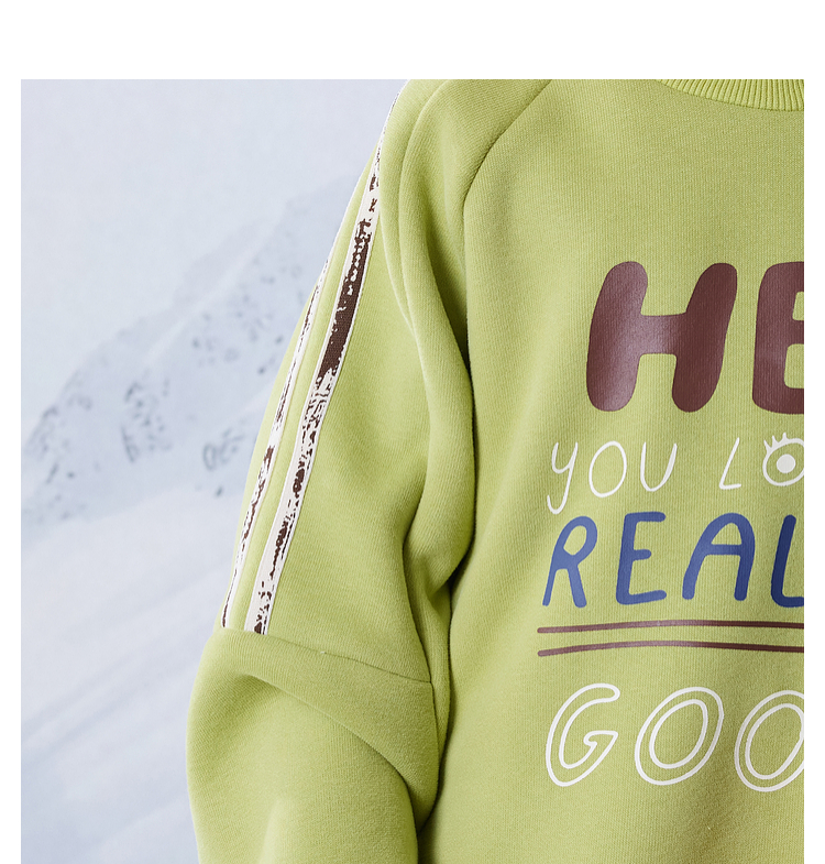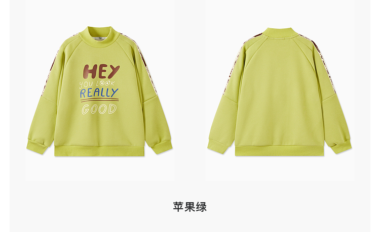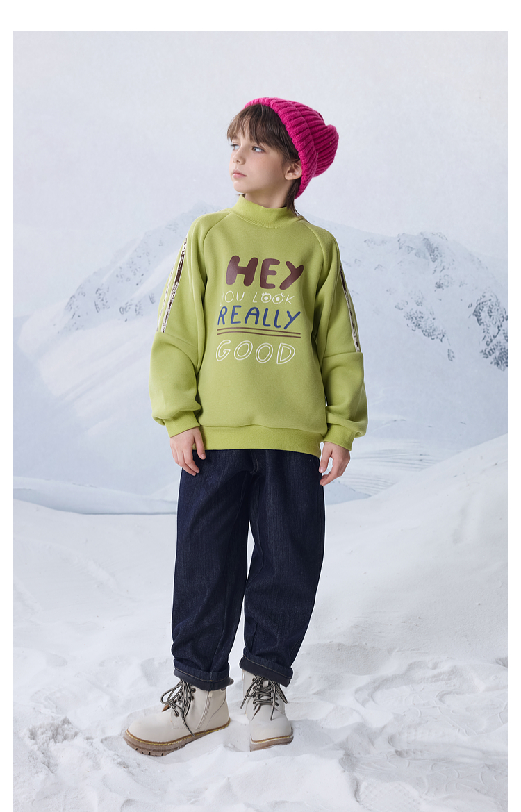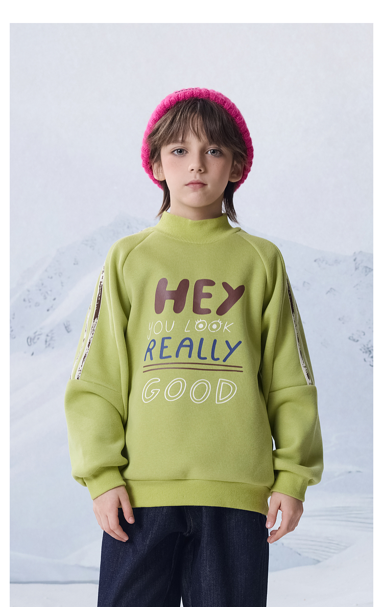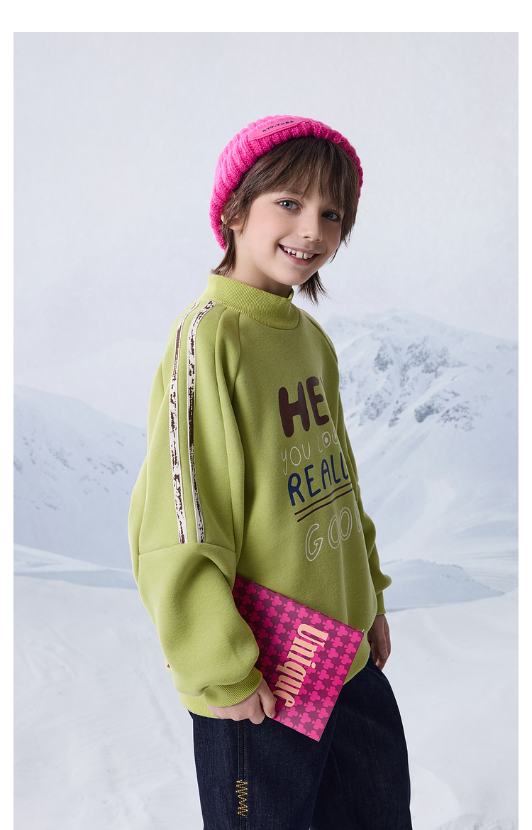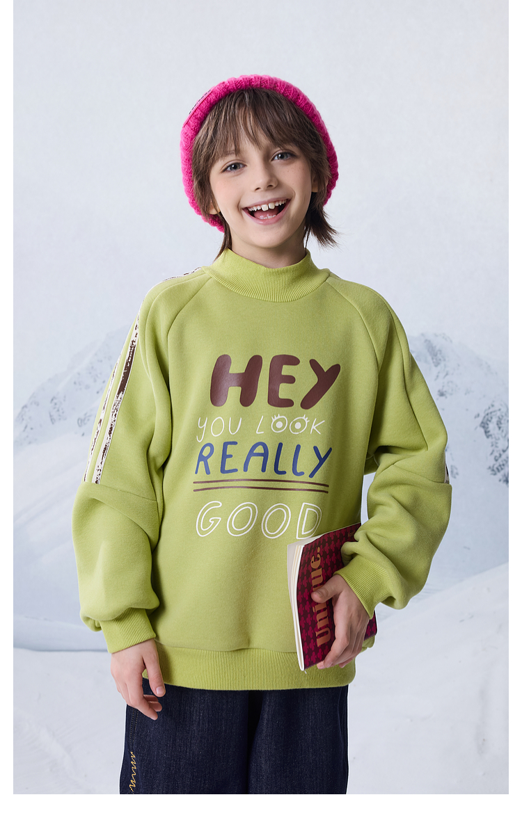 【MQD】冬季新品男大童学院风字母插肩袖半高领加绒卫衣