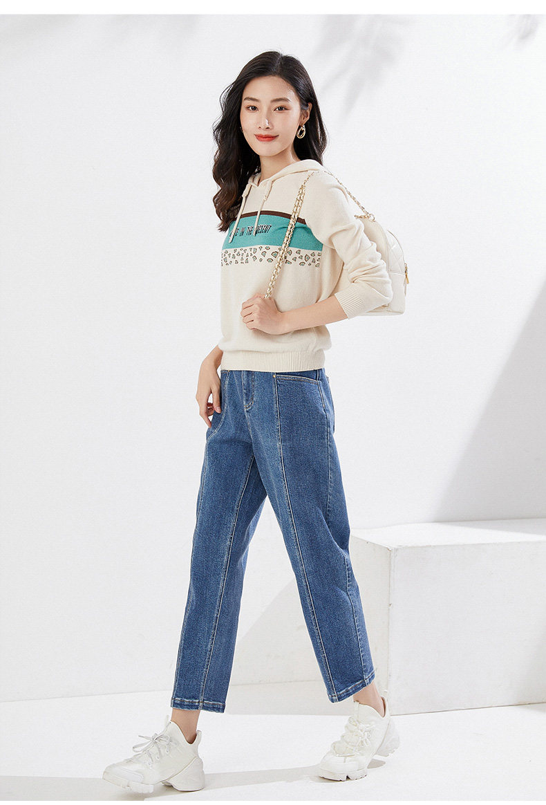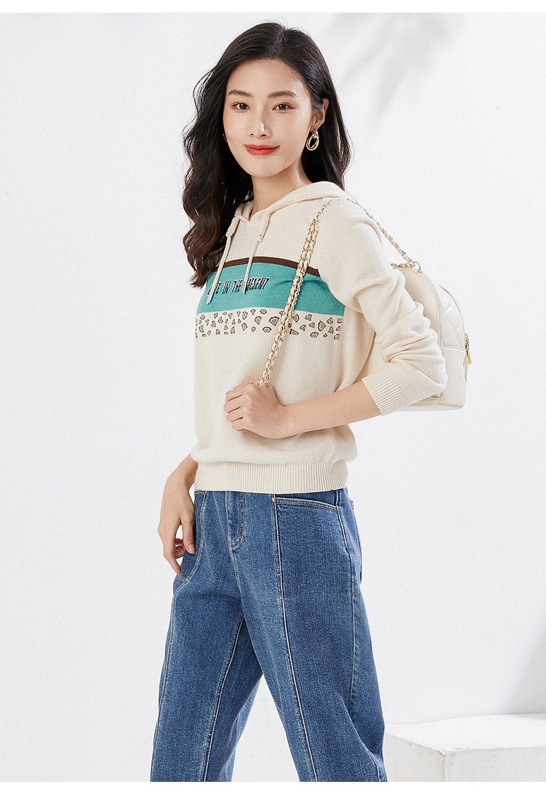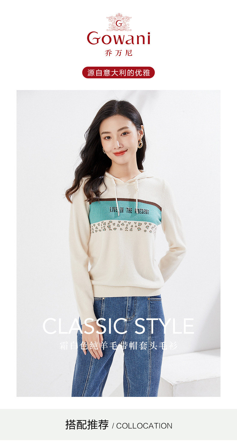 乔万尼新品针织衫连帽减龄设计宽松短款休闲上衣EI3M271