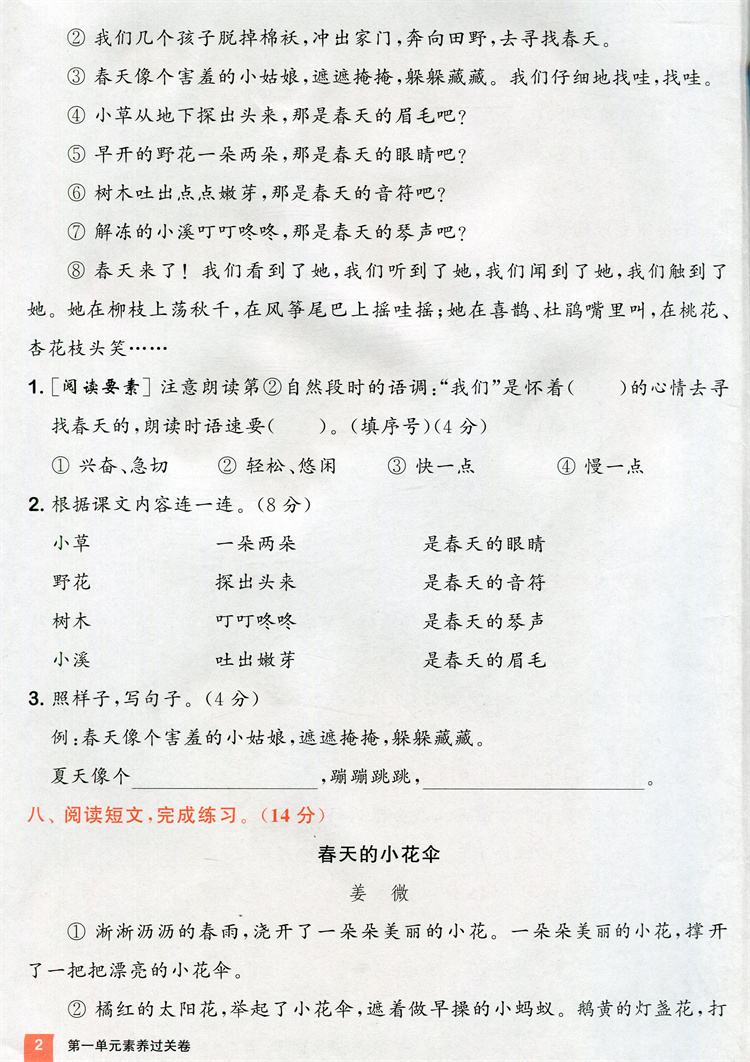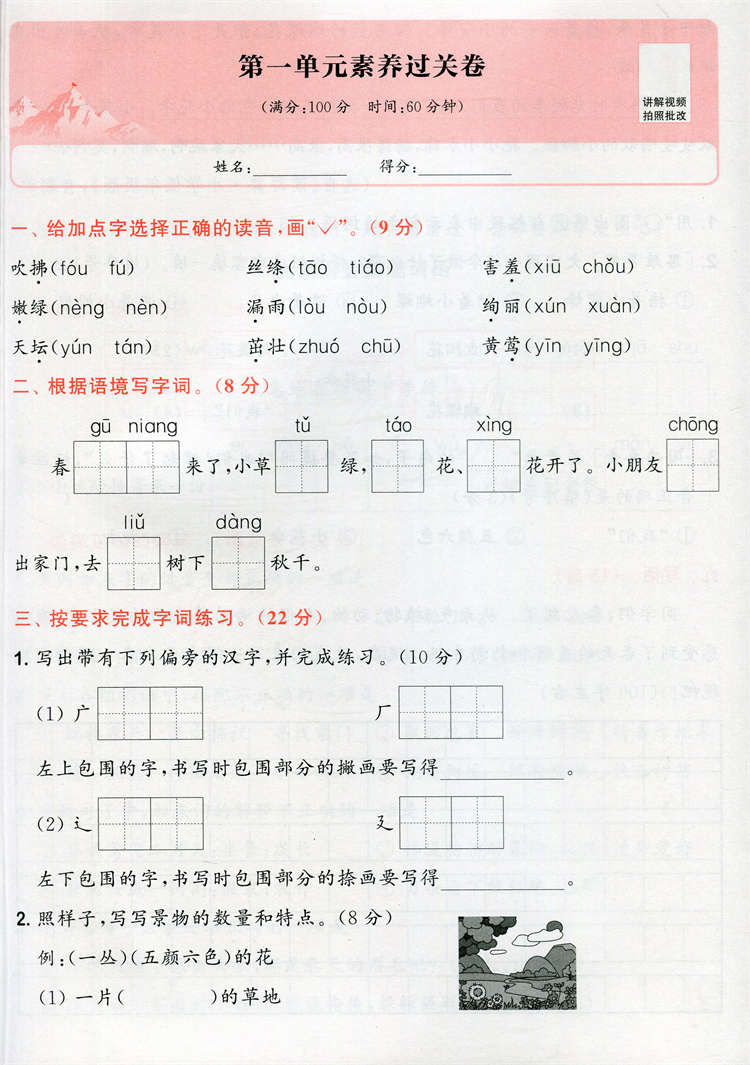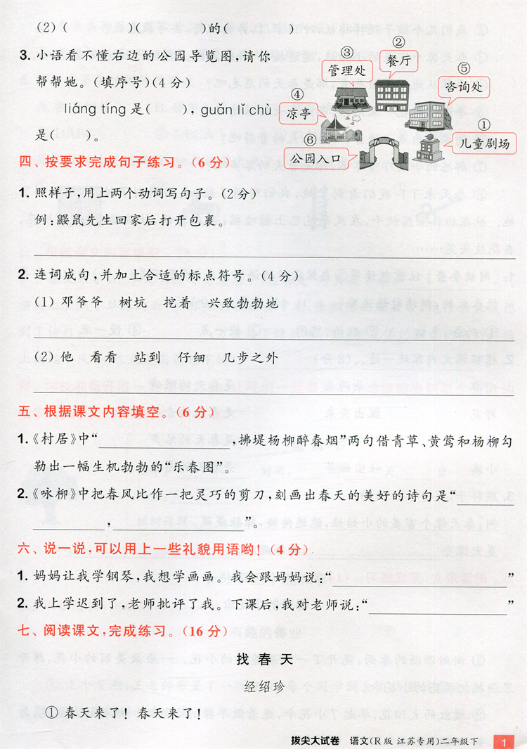 2025春 拔尖大试卷 语文二年级下册 配人教版 小学教辅 2下小学试卷 答案讲解视频 学生用书江苏专版 浙江少年儿童出版社