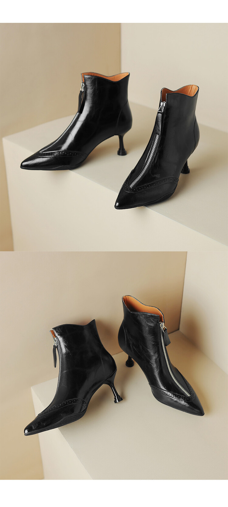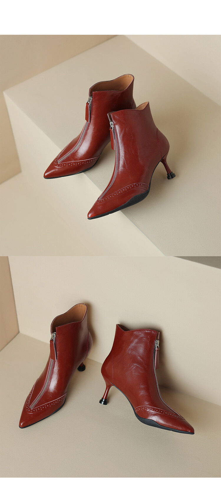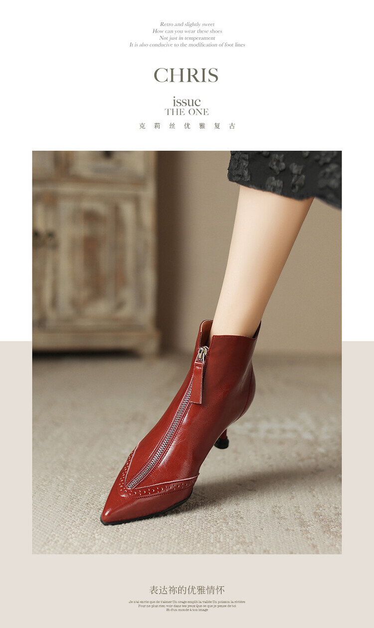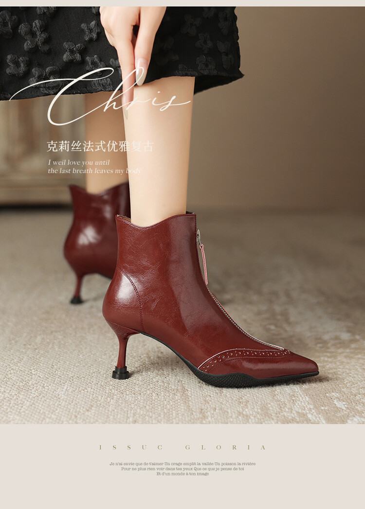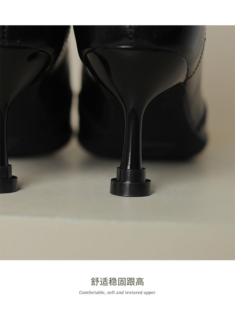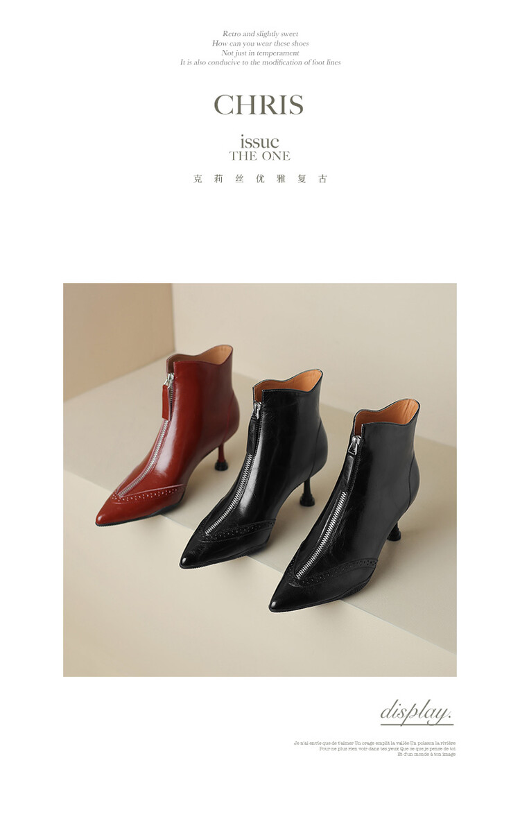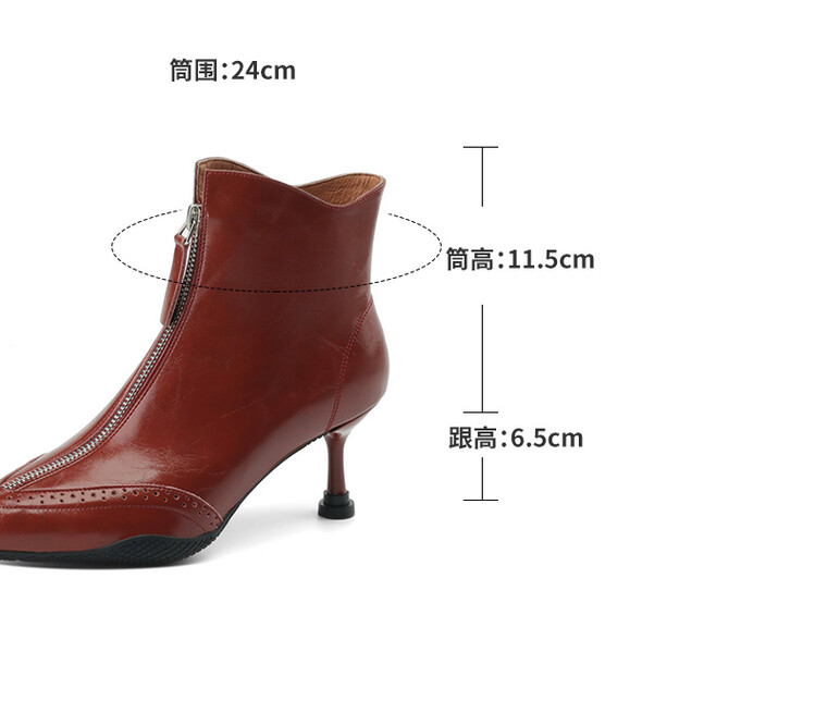 垫脚:猪皮/绒里内里:猪皮/保暖绒里鞋底材质:橡胶底颜色:黑色 棕色尺码:34-39跟高:6.5CM