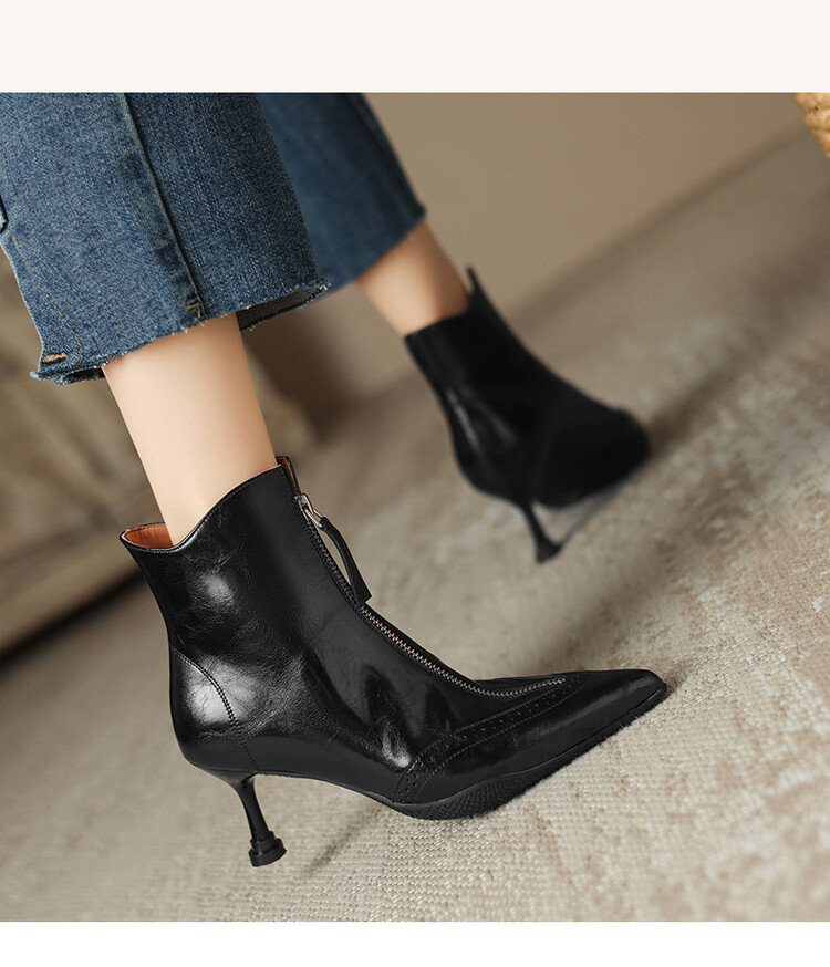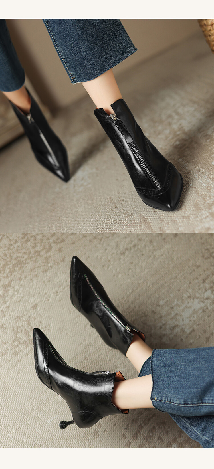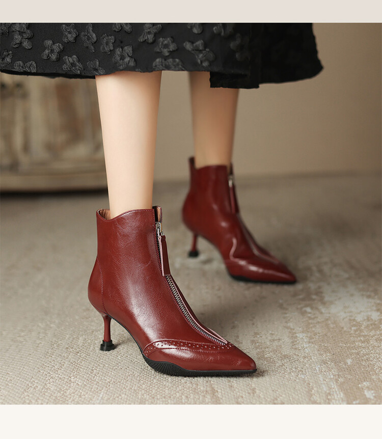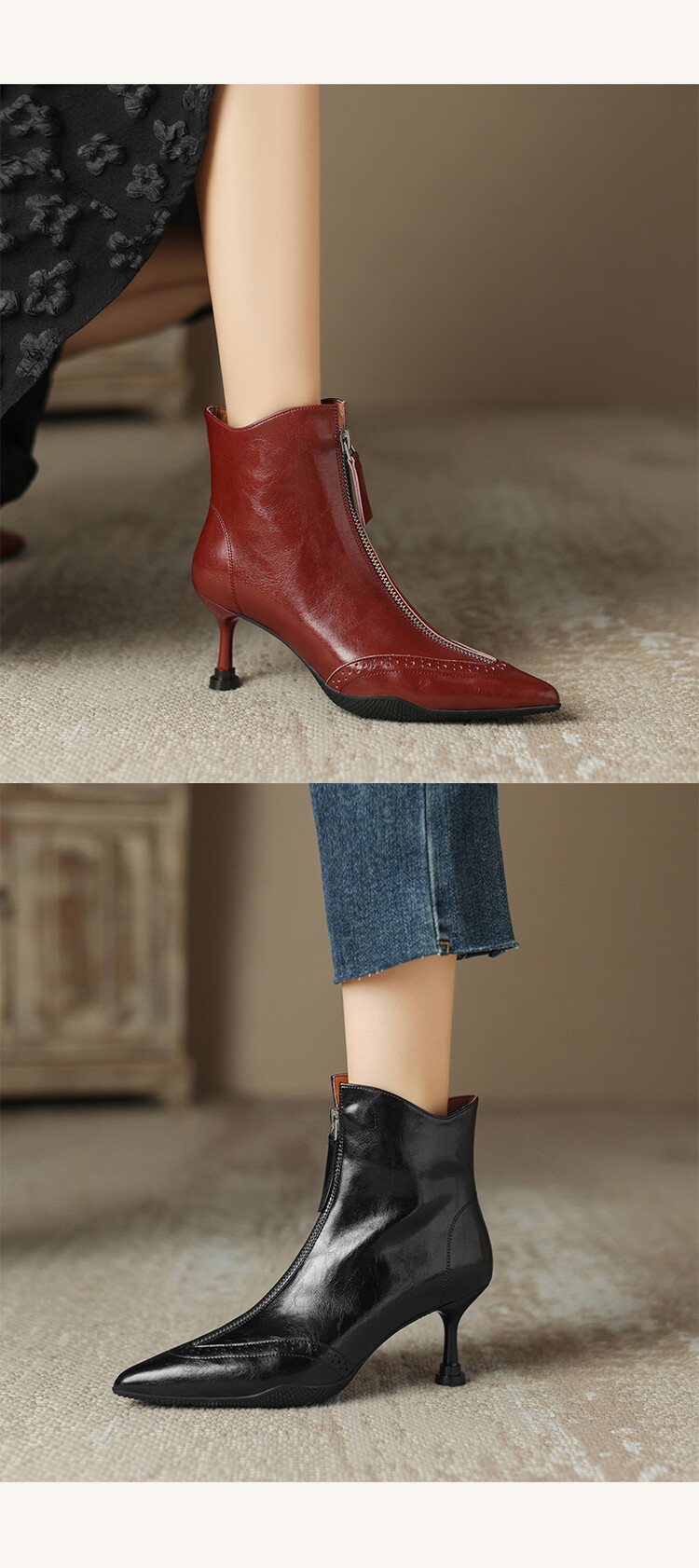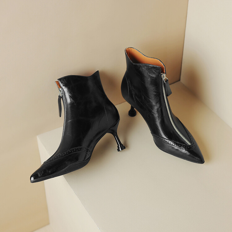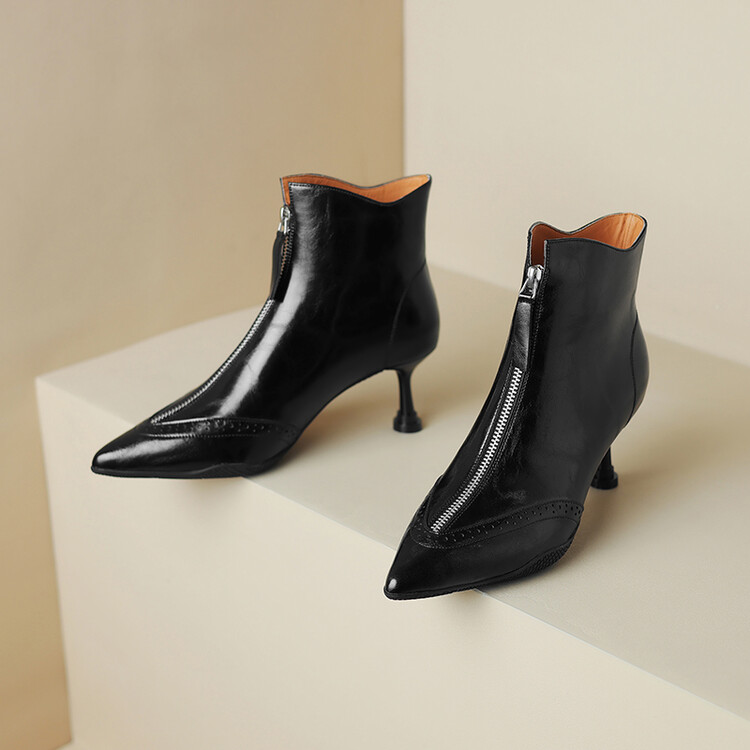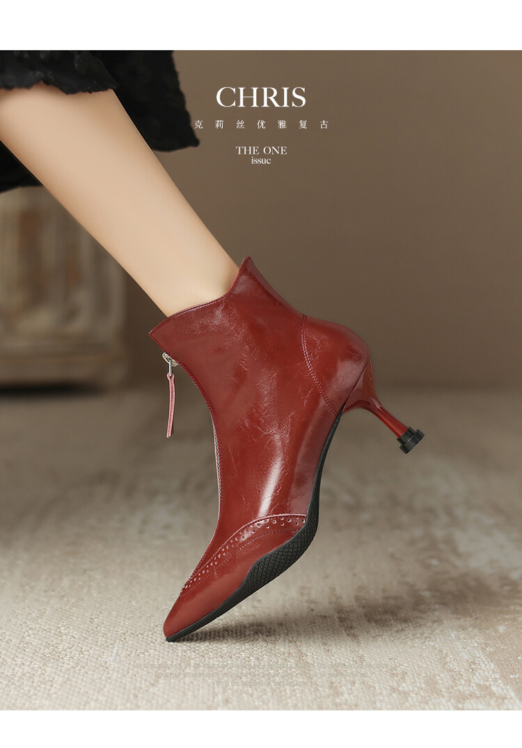 垫脚:猪皮/绒里内里:猪皮/保暖绒里鞋底材质:橡胶底颜色:黑色 棕色尺码:34-39跟高:6.5CM