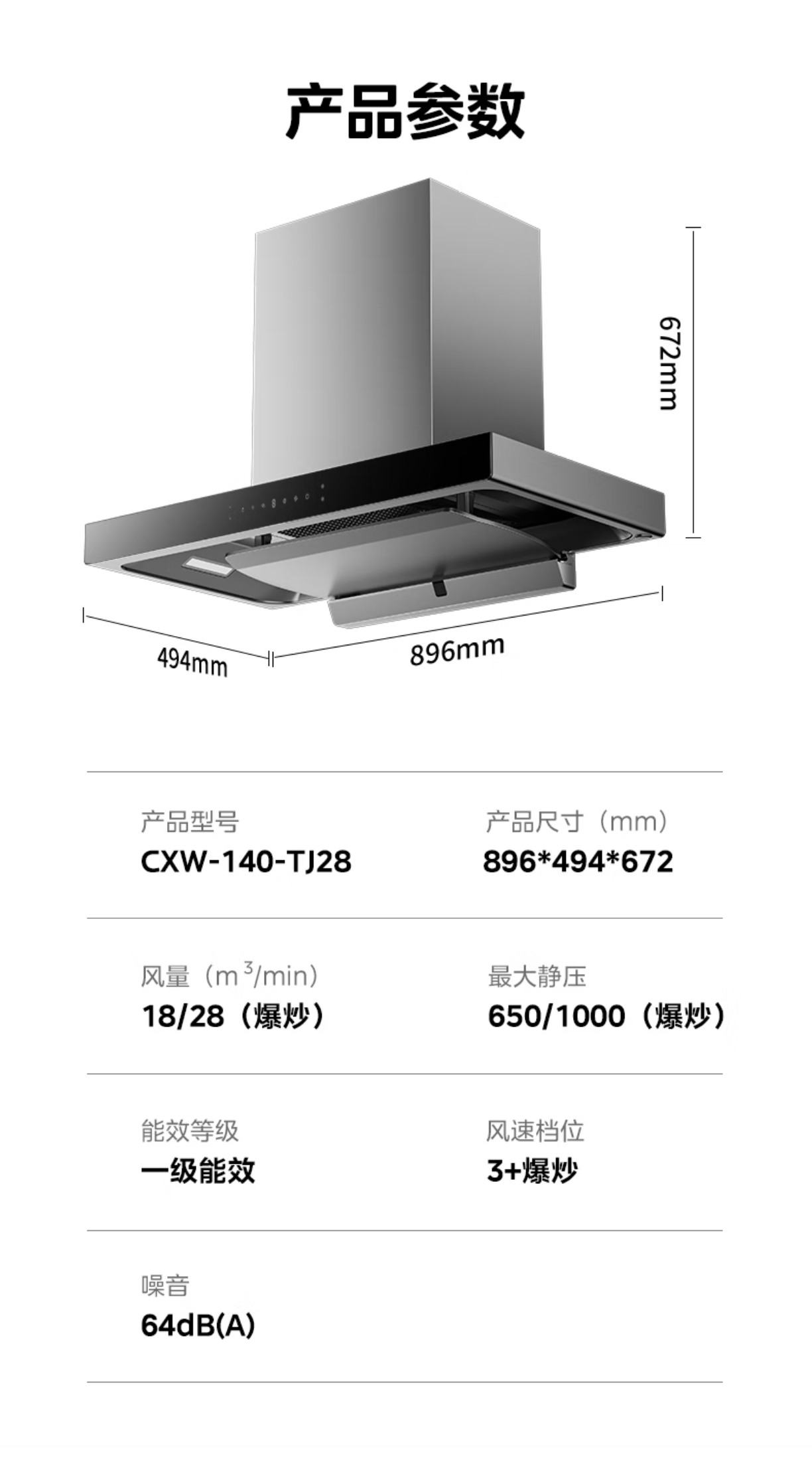 美的(Midea)28立方爆炒大吸力 1000Pa大静压 挥手智控 WiFi智控 家用油烟机 抽油烟机CXW-140-TJ28*