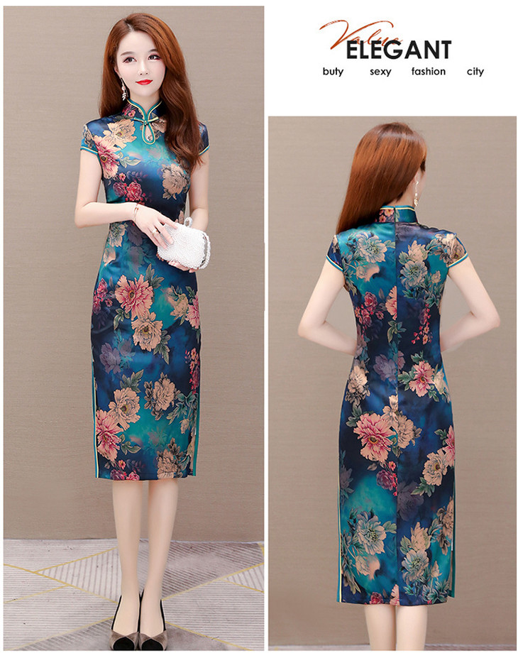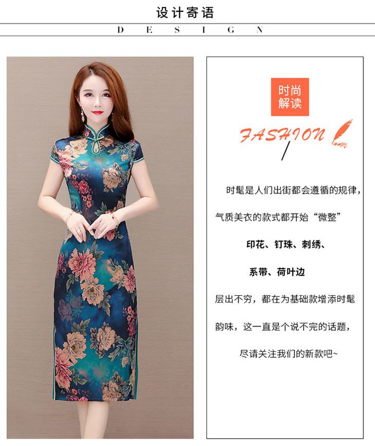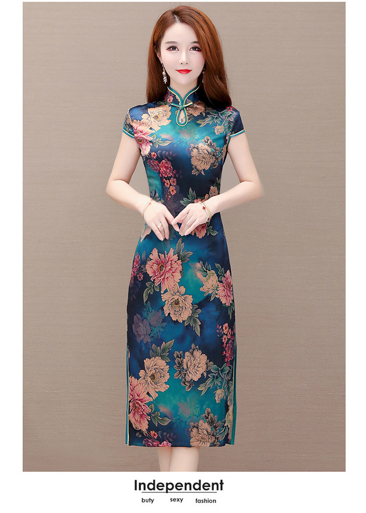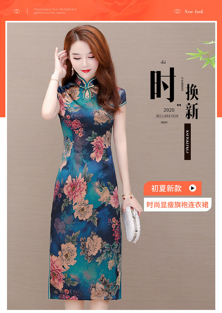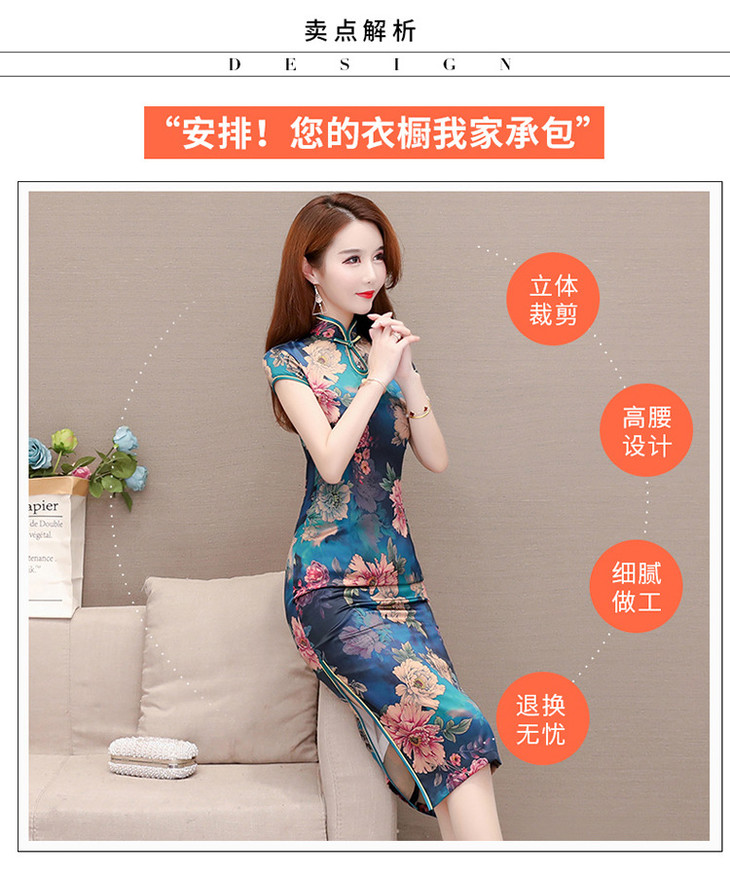 YW-XH-8326-1修身气质,改良版立领印花旗袍连衣裙