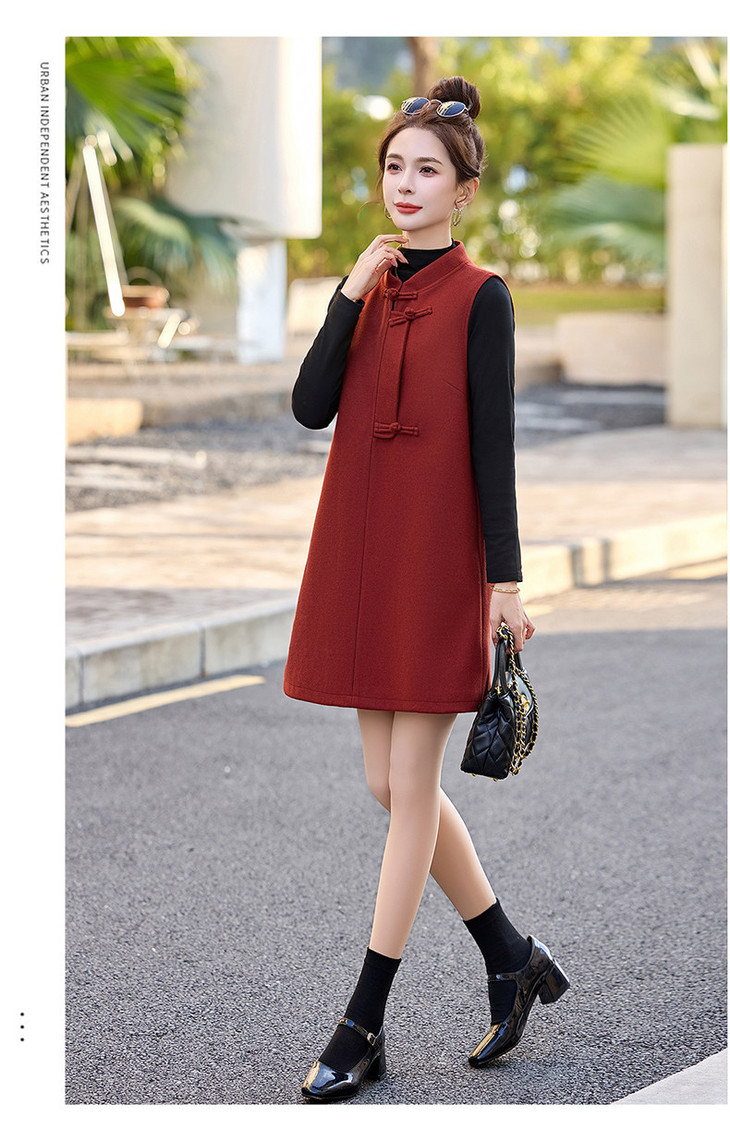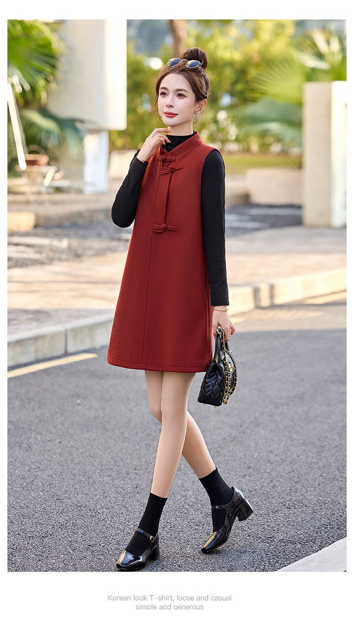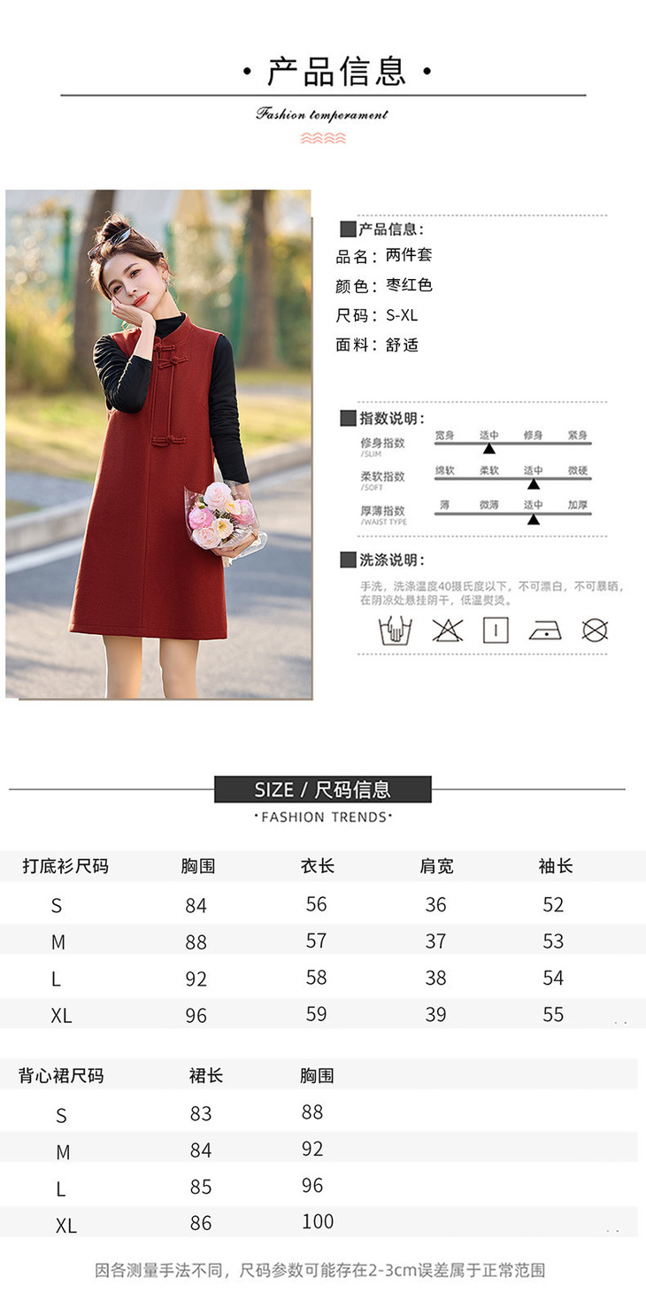新中式套装女装春秋2026年新款小个子国风盘扣背心裙打底衫两件套DMGY2663
