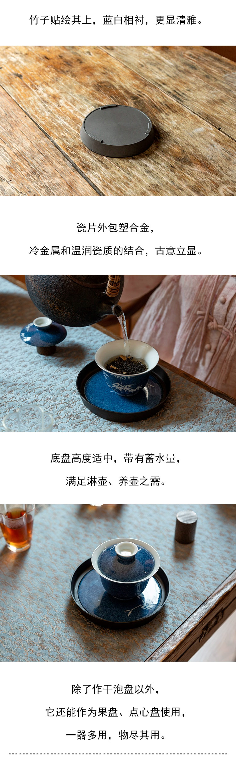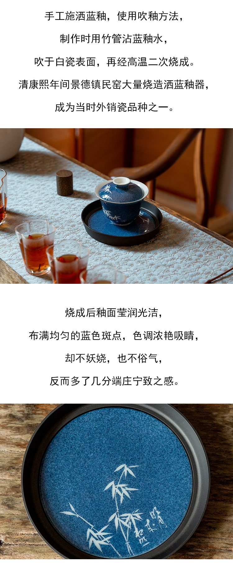 茶香记 洒蓝文竹壶承手工吹釉干泡盘点心盘陶瓷茶盘茶桌零配茶具