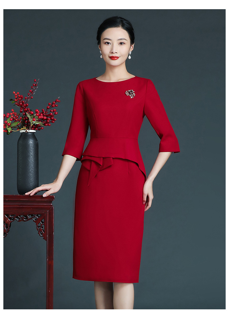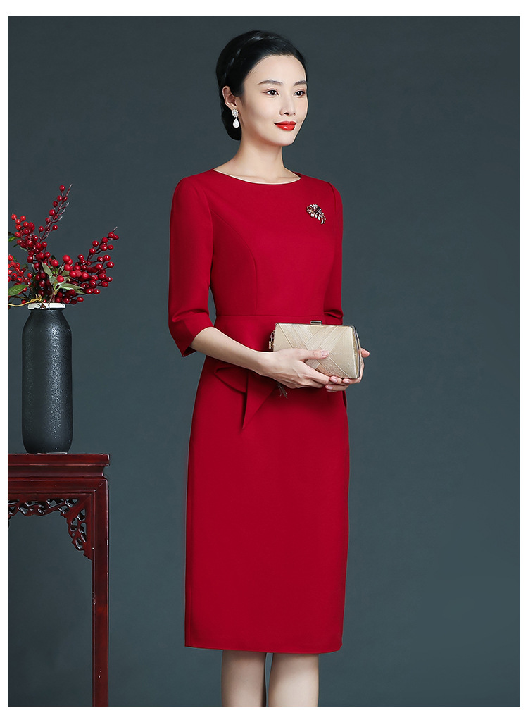 上海旗袍厂ZY-Q5756秋冬新款欧美风时尚简约年轻妈妈装大码七分袖连衣裙