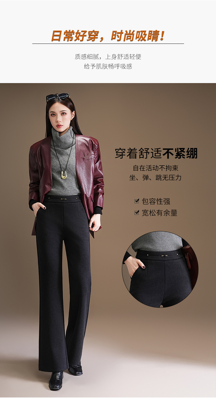 「自」全新升级【铂金会员165/天猫219/差价54】(53042)洛诗琳百搭软糯垂感微喇裤2025秋冬新款气质高腰显瘦直筒裤