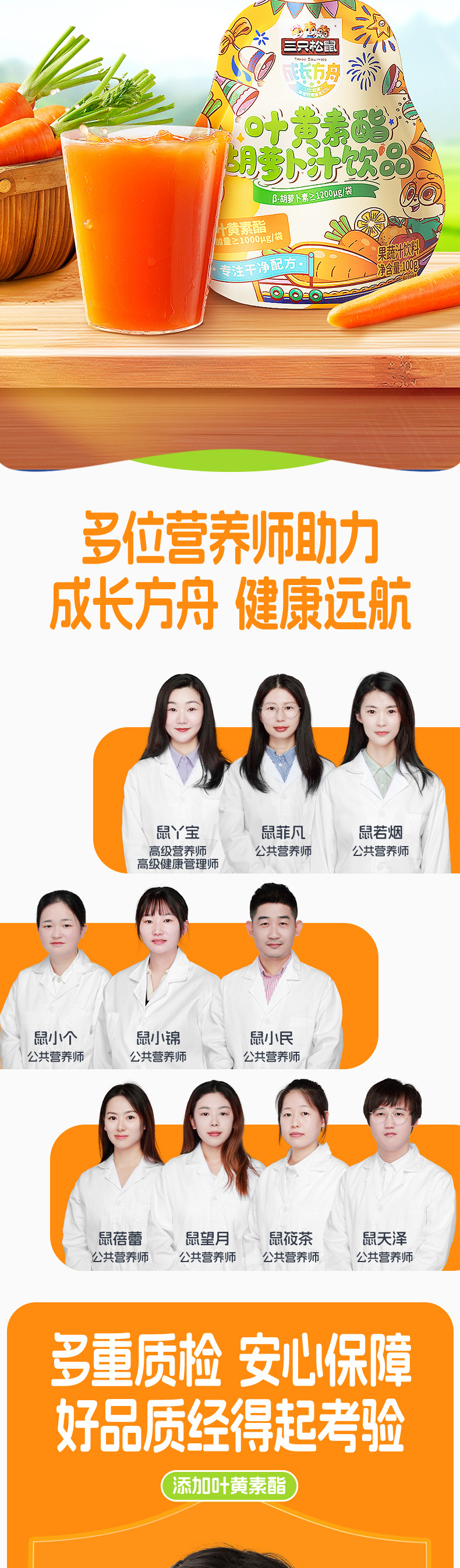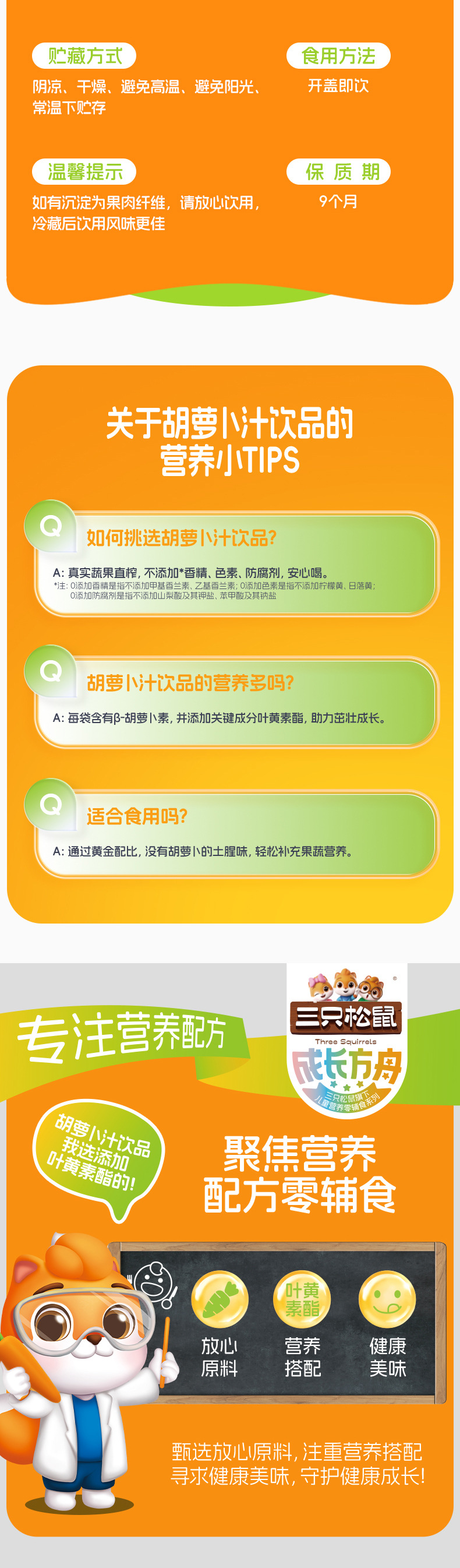 【胡萝卜汁饮品,我选添加叶黄素酯的!】三只松鼠叶黄素酯胡萝卜汁礼盒装 即饮成人小孩儿童无添加饮料礼盒 整箱15袋-QQ