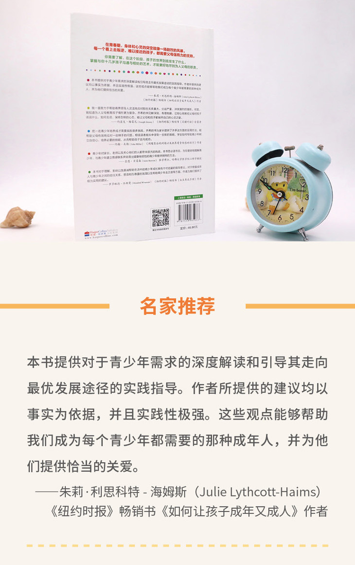 在书中,作者展示了如何成为有效关怀青少年成长的成年人。他强调相互尊重、信任以及鼓励的必要,并提出了成人理解青少年所需的三种关键思维模式。正如作者提醒的那样,把孩子培育成值得尊敬的成年人,归根究底要靠对他们投注心血,并给予其成长所需的空间、时间和各种支持。