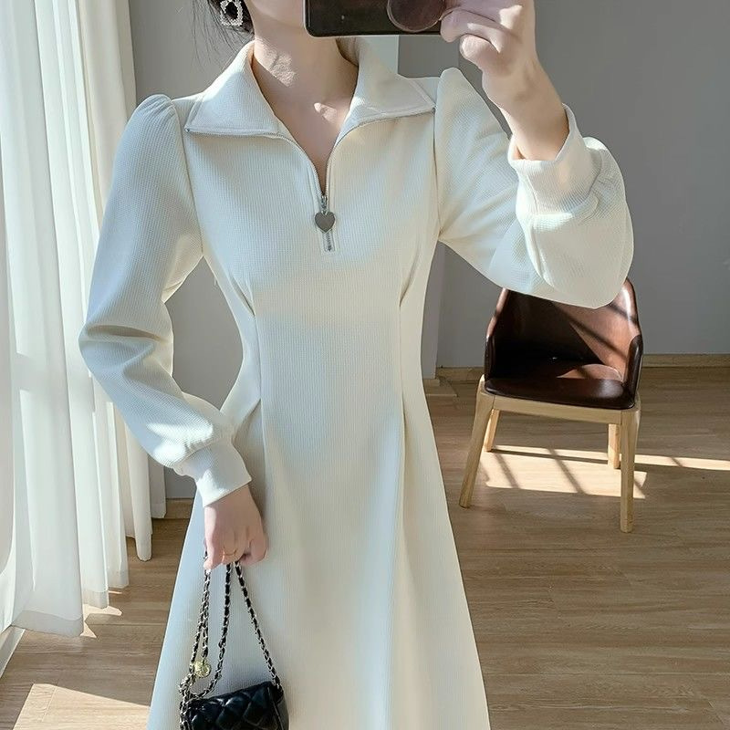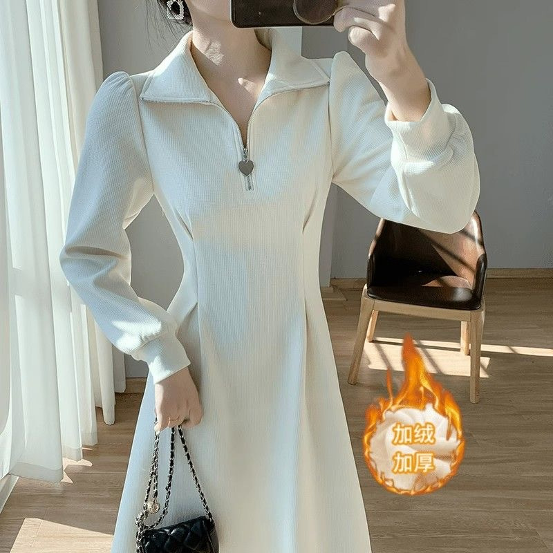 【法式连衣裙,时尚加气质】茶歇法式长袖连衣裙 女生小个子秋冬高级感 气质加绒加厚大衣内搭长裙-QQ