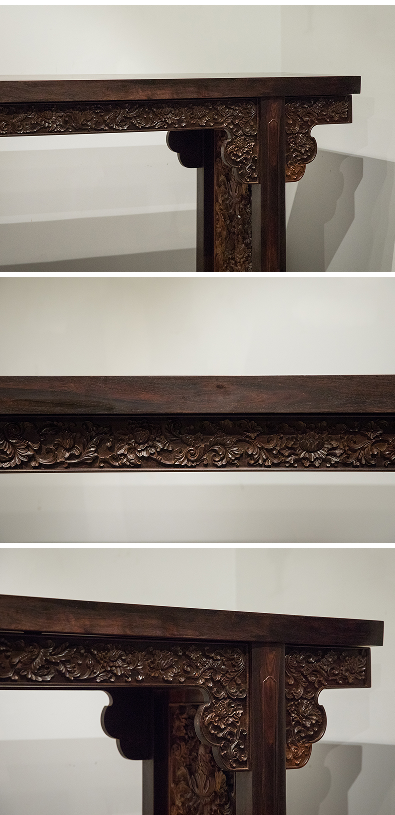 二十世纪 紫檀夹头榫雕西番莲纹平头案