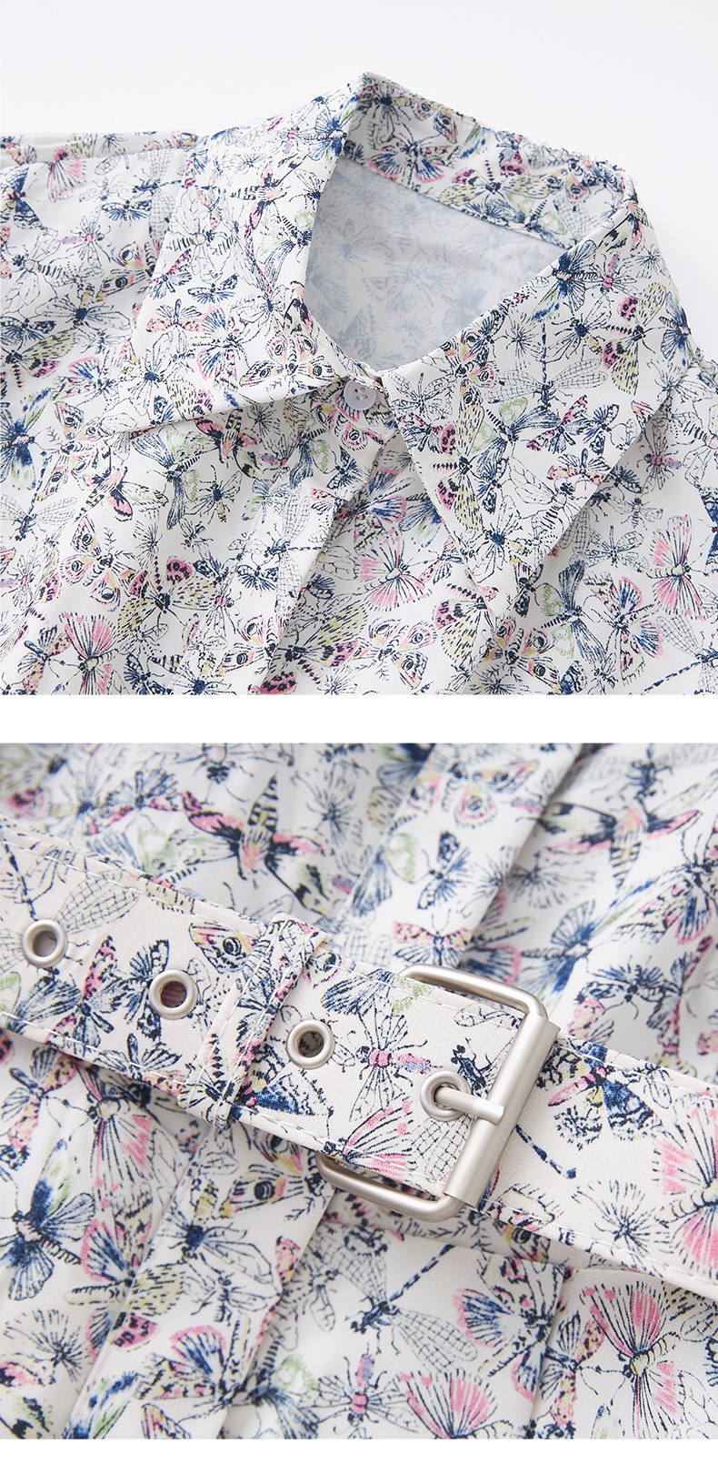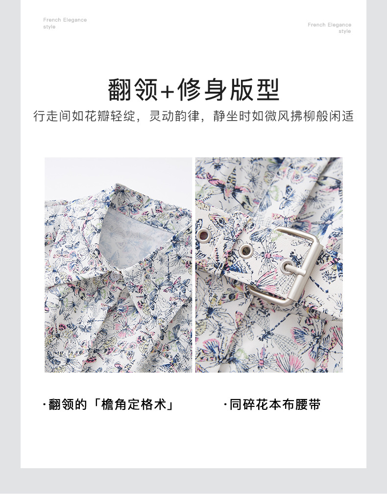 「高货wl」全新升级【铂金会员367/天猫499/差价132】(10907)洛诗琳法式蝴蝶印花连衣裙2025夏季优雅收腰显瘦衬衫裙女