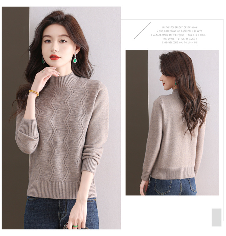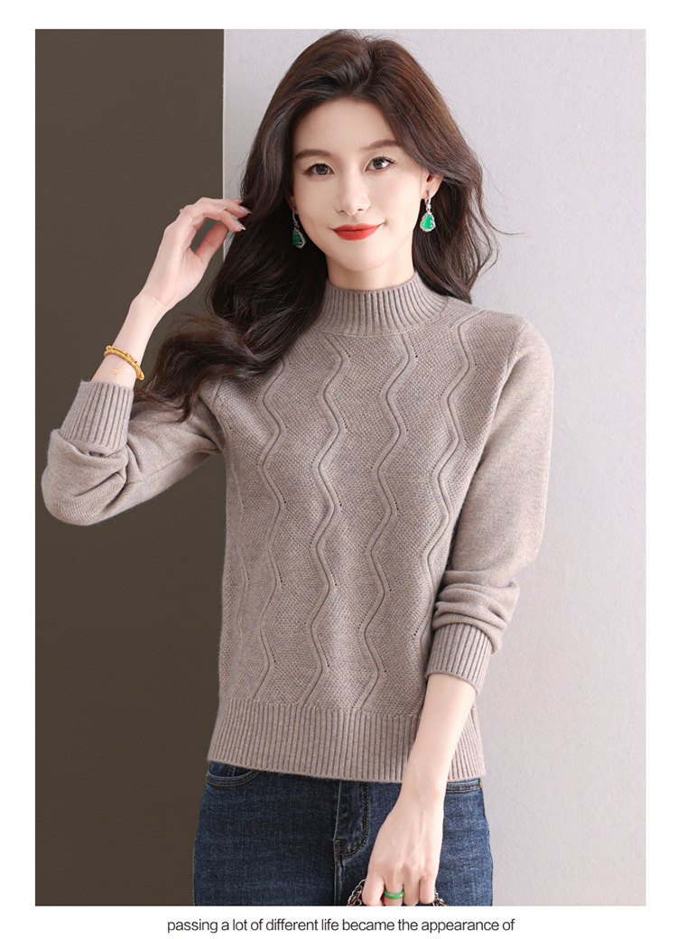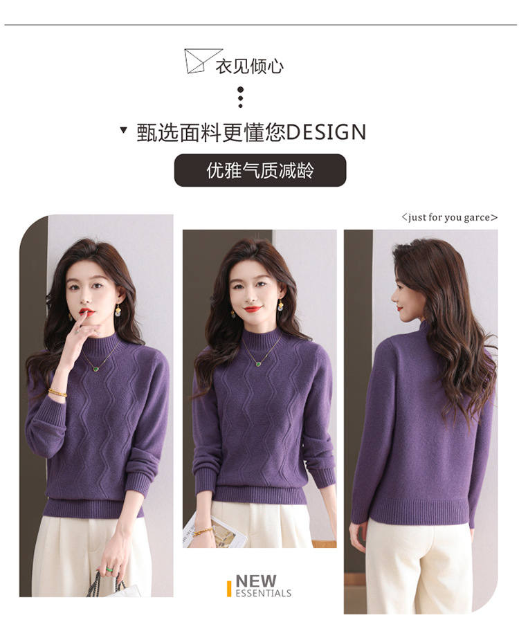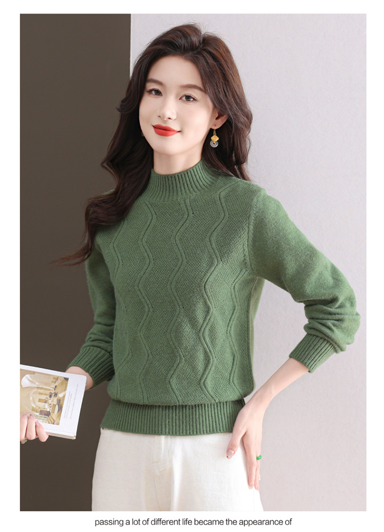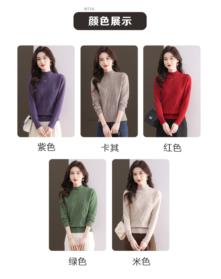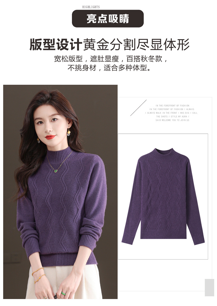 CC-103-1672厚款半高领毛衣女秋冬内搭新款宽松简约上衣中年妈妈羊毛打底衫女