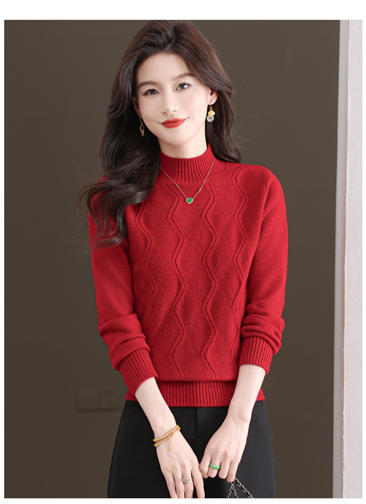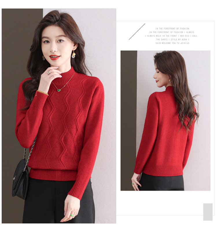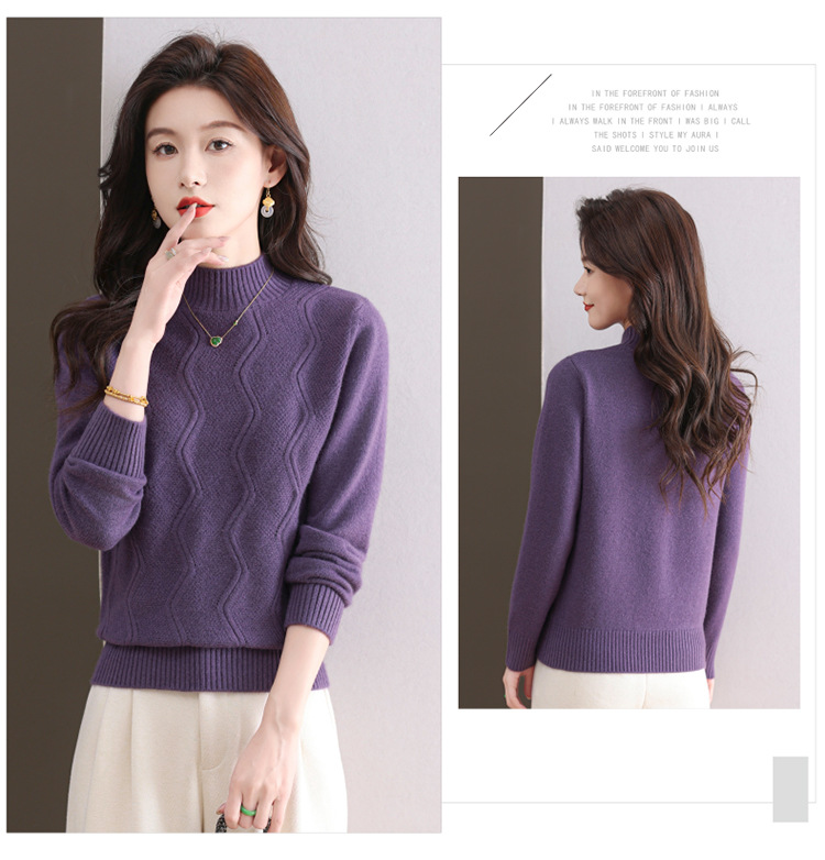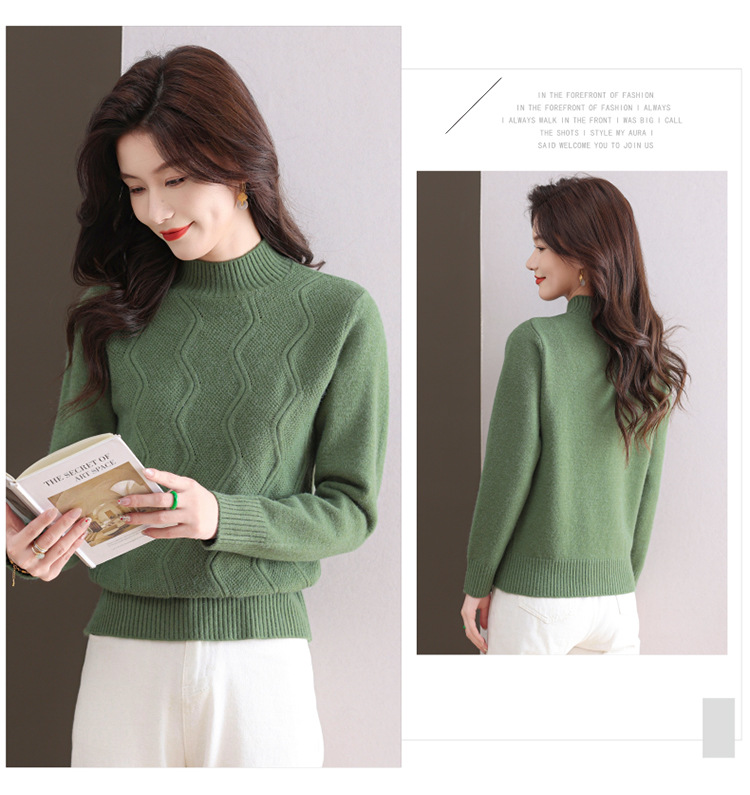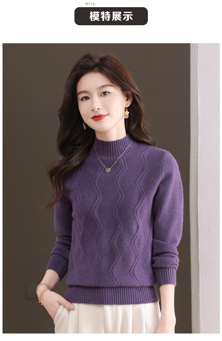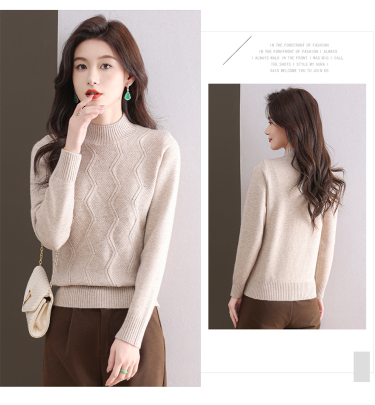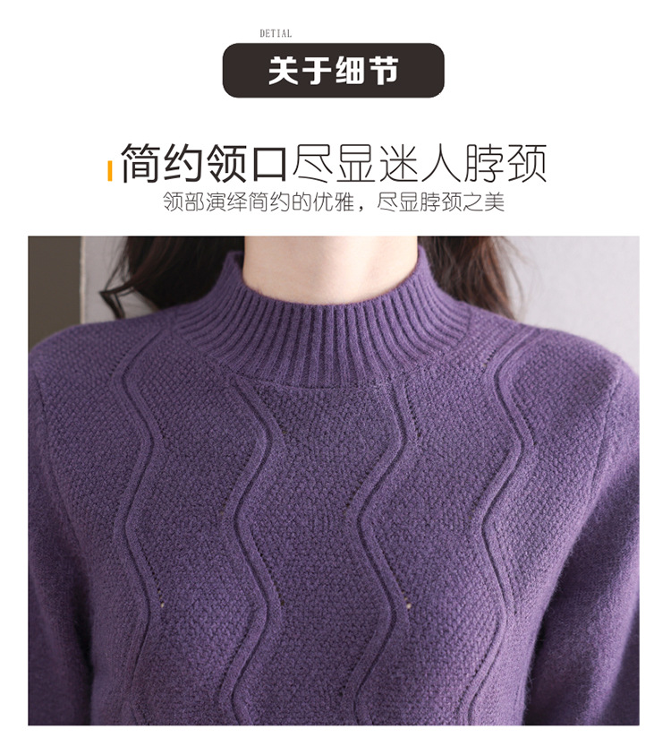 CC-103-1672厚款半高领毛衣女秋冬内搭新款宽松简约上衣中年妈妈羊毛打底衫女