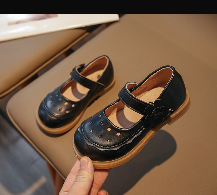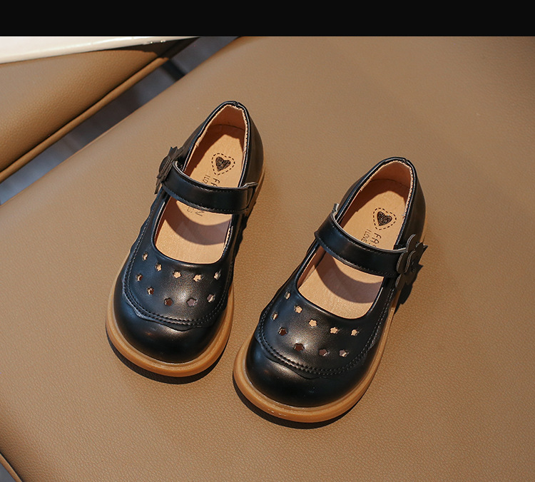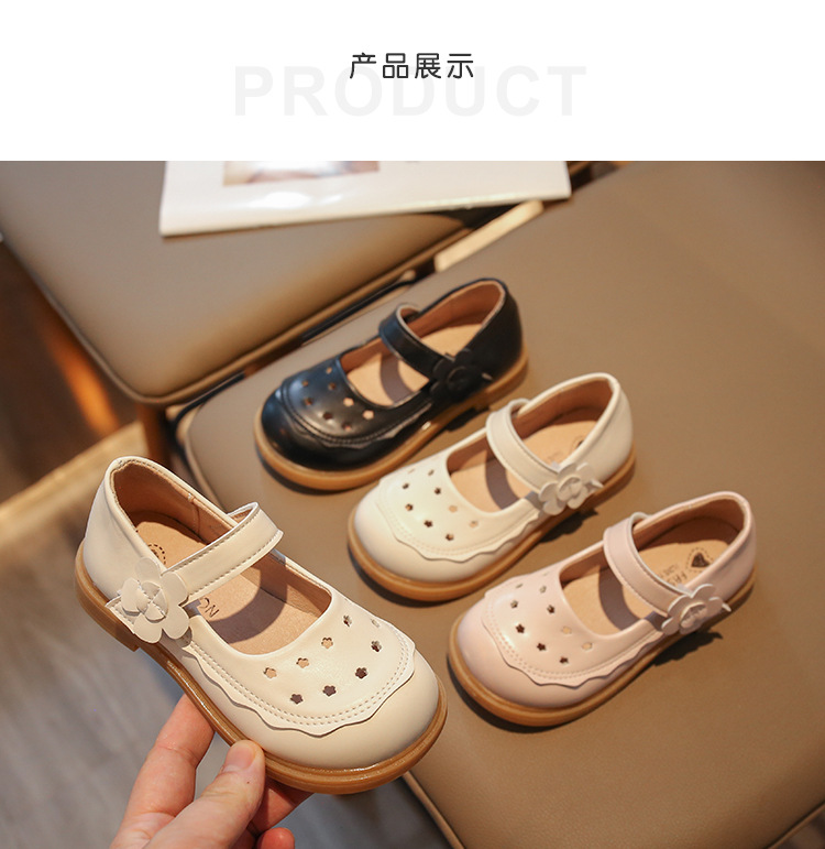 【手感细腻,防撞鞋头】女童皮鞋 洋气女童鞋春秋 2024新款 公主鞋 镂空软底鞋子 洞洞鞋单鞋四季鞋-QQ