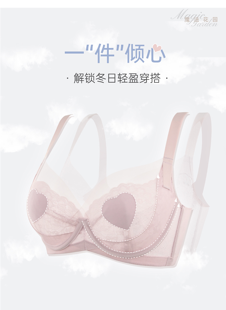 贝佳人文胸新款“心悦”深V全罩背心拼棉围-BW982221
